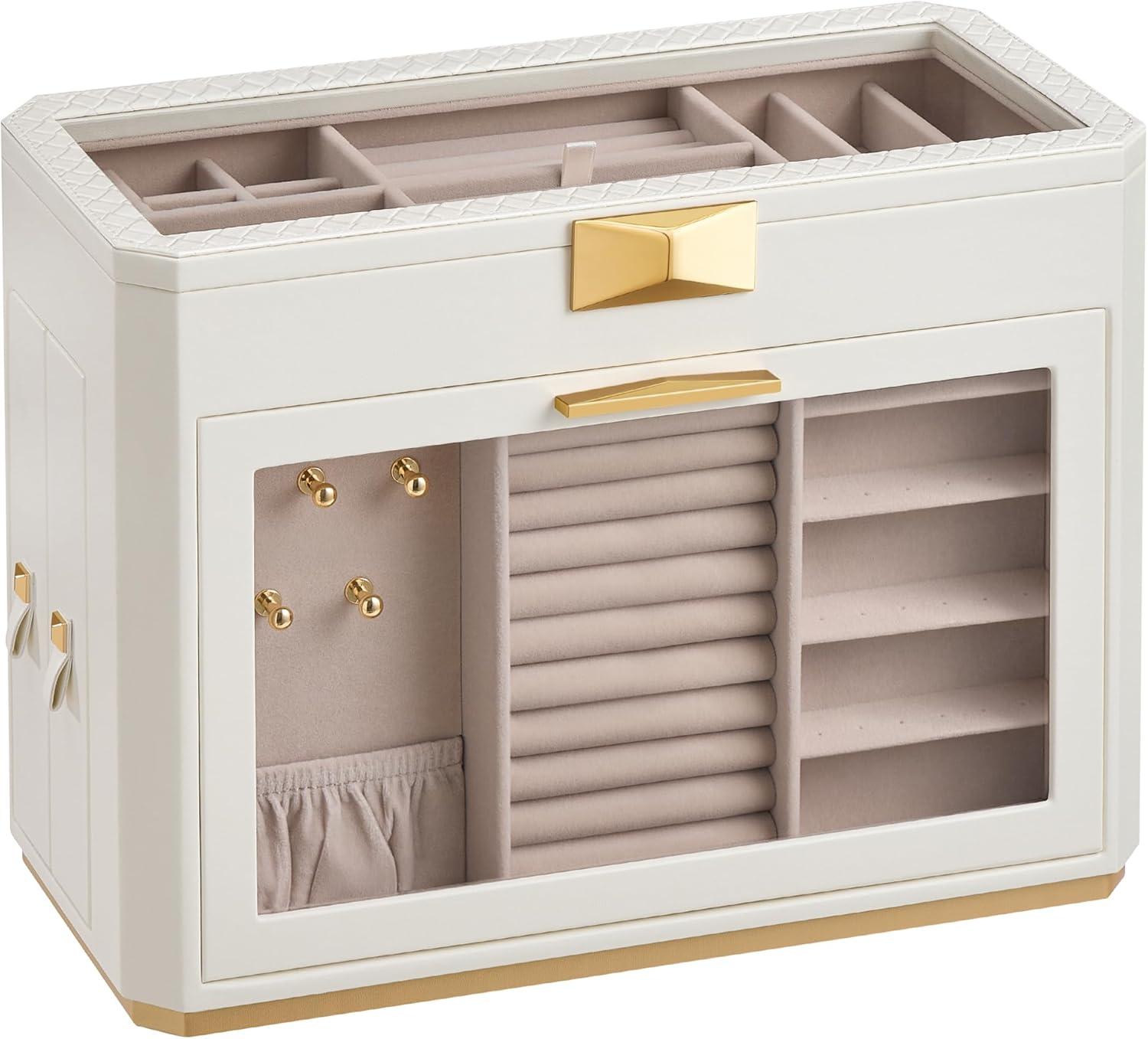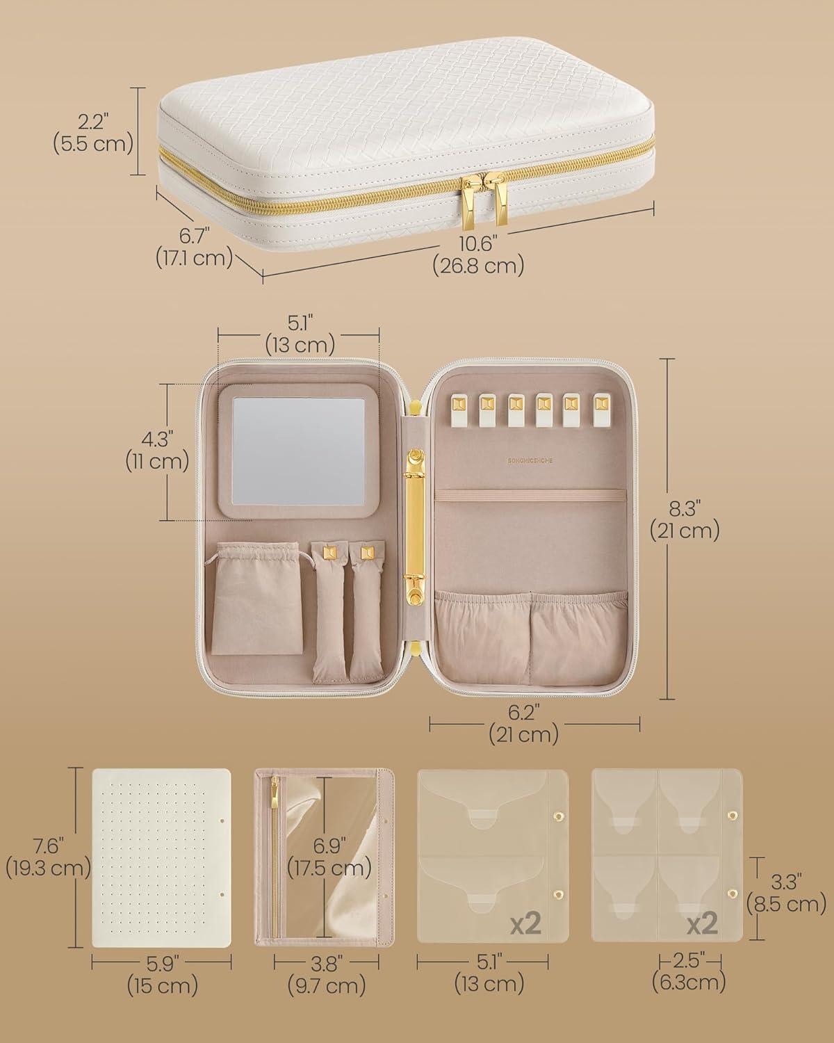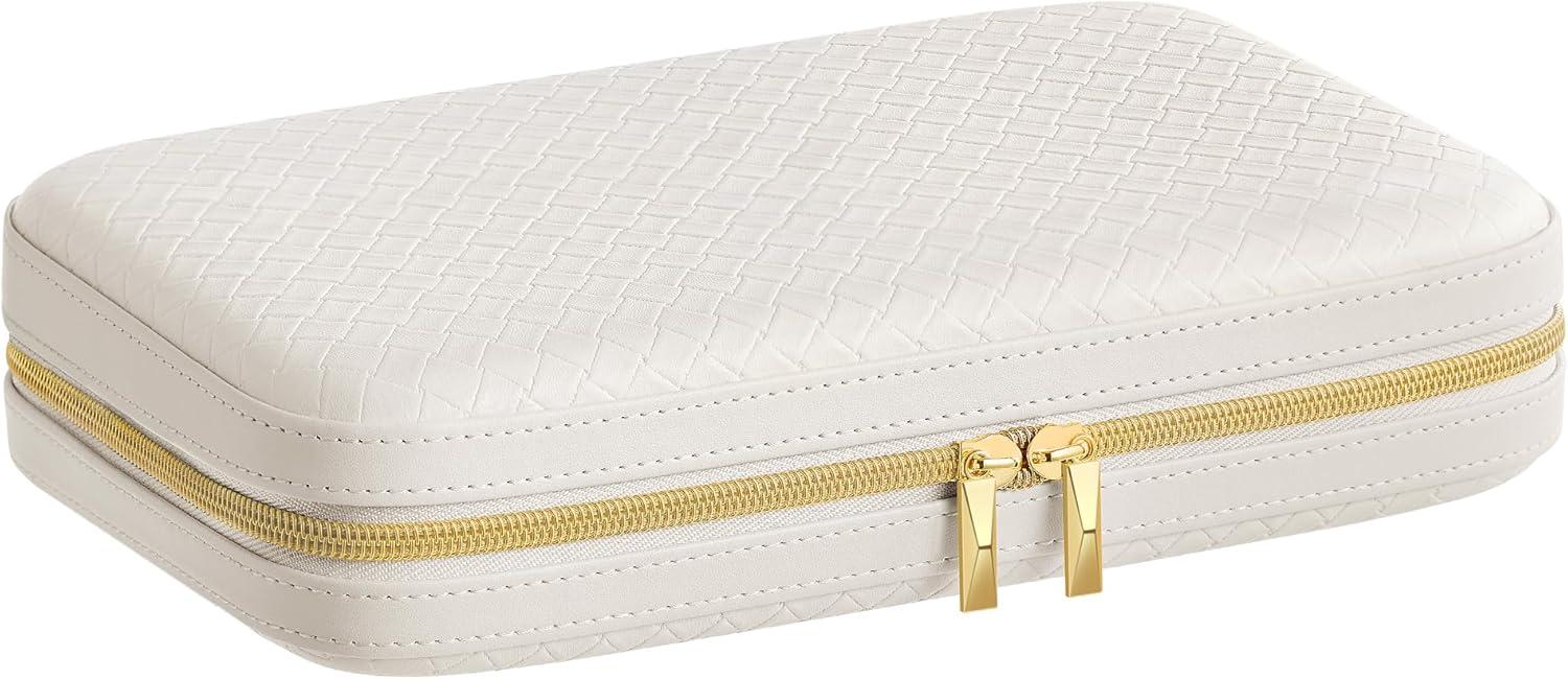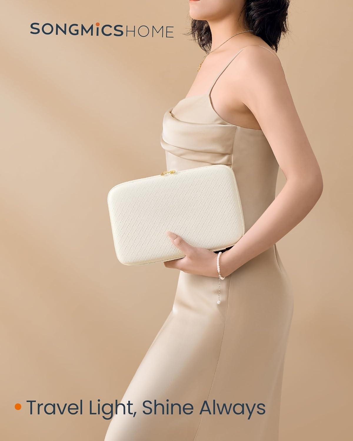 【SHOWCASE YOUR STYLE】Timeless elegance meets modern luxury with this travel jewelry case from SONGMICS HOME RONNE Collection. Boasting woven embossed PU leather accented with baguette cut-inspired hardware, it's your style declaration