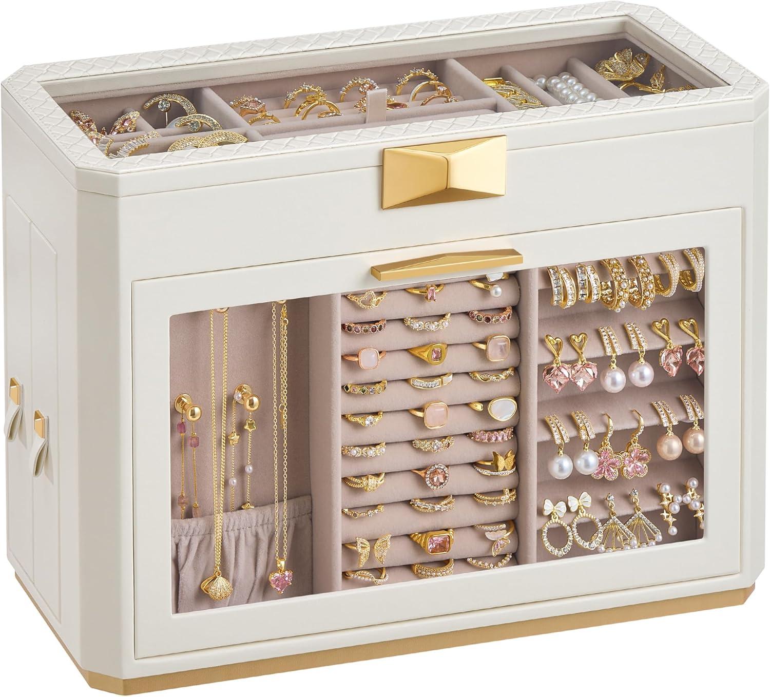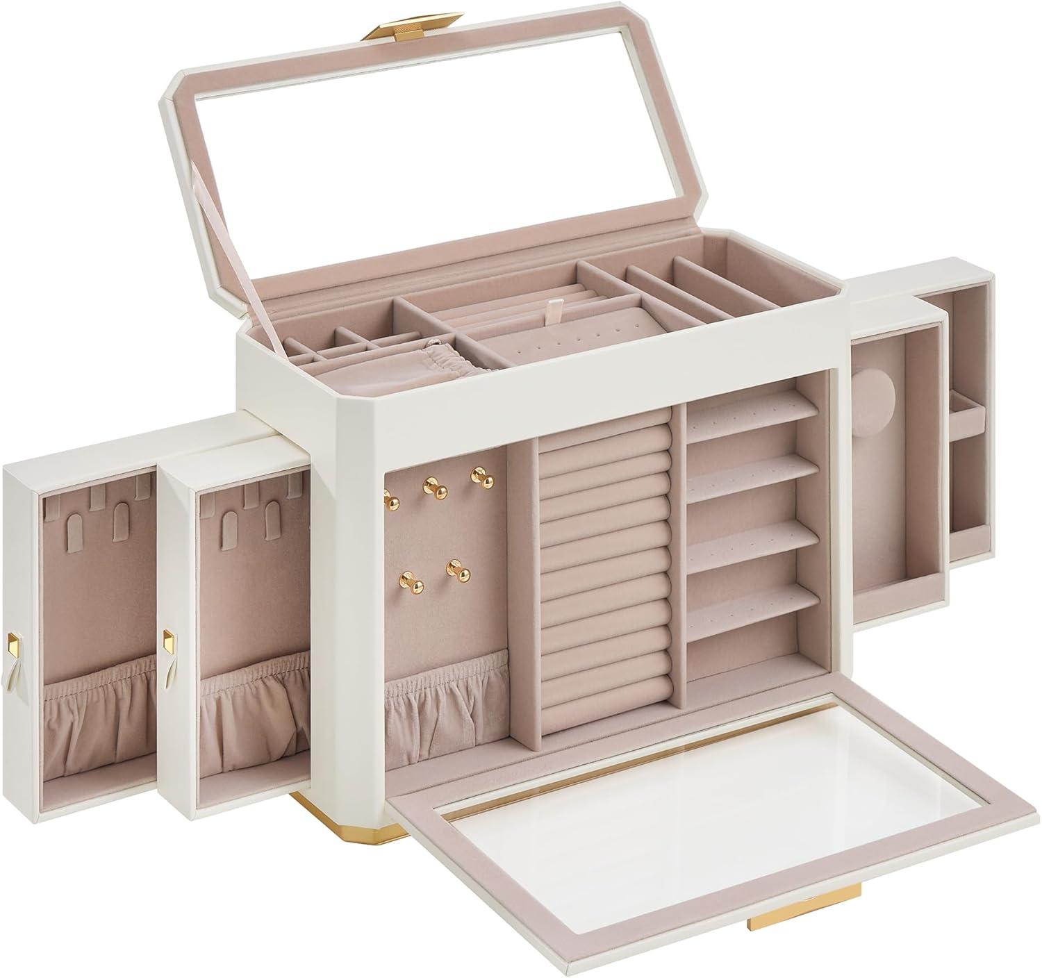 【USER-FRIENDLY DESIGNS THAT DELIGHT】A removable mirror allows for quick checks of makeup or accessories. A felt pad under the earring board provides extra protection. A velvet pocket keeps your necklaces tangle-free and away from scratches