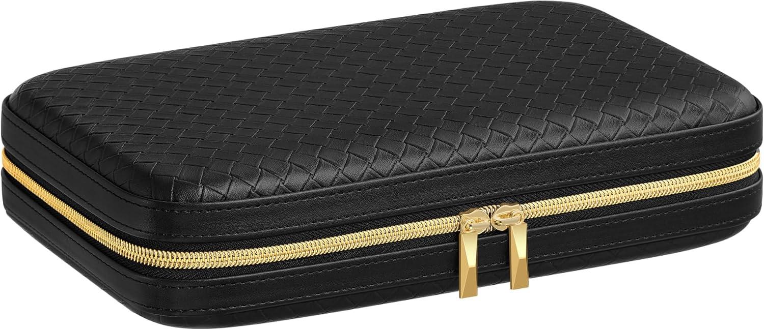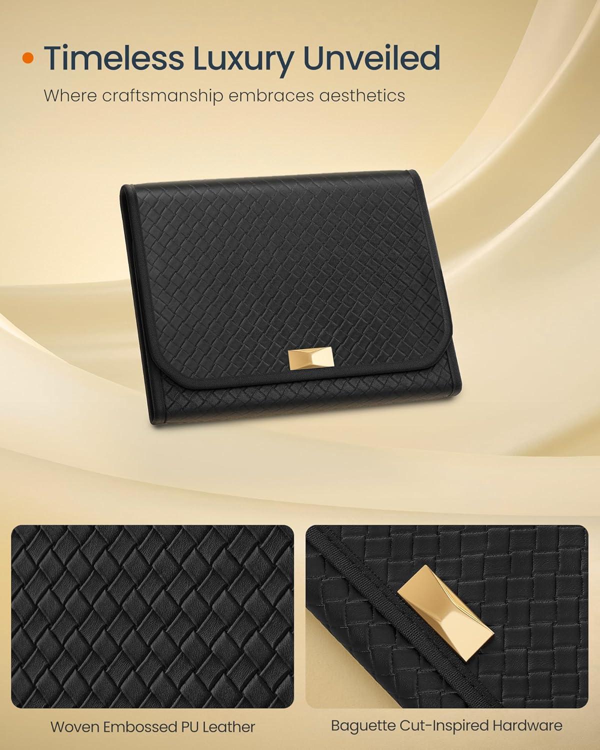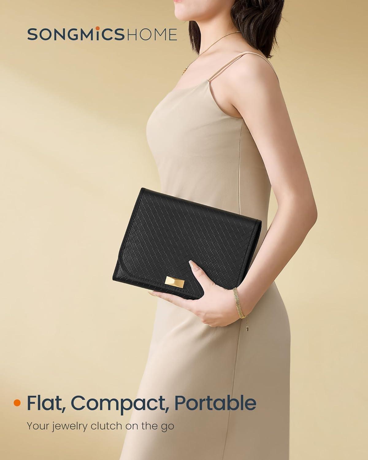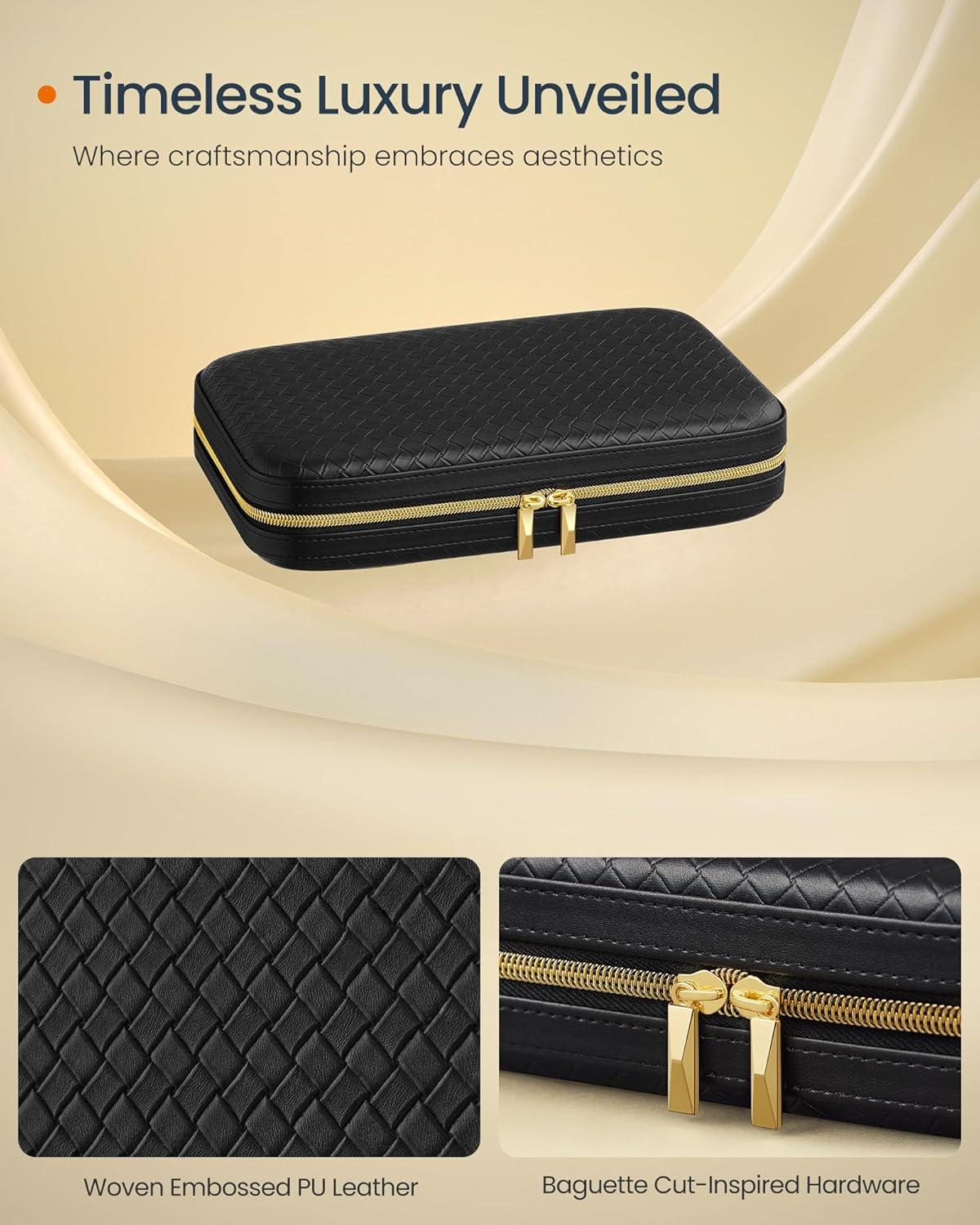 【SHOWCASE YOUR STYLE】Timeless elegance meets modern luxury with this travel jewelry case from SONGMICS HOME RONNE Collection. Boasting woven embossed PU leather accented with baguette cut-inspired hardware, it's your style declaration