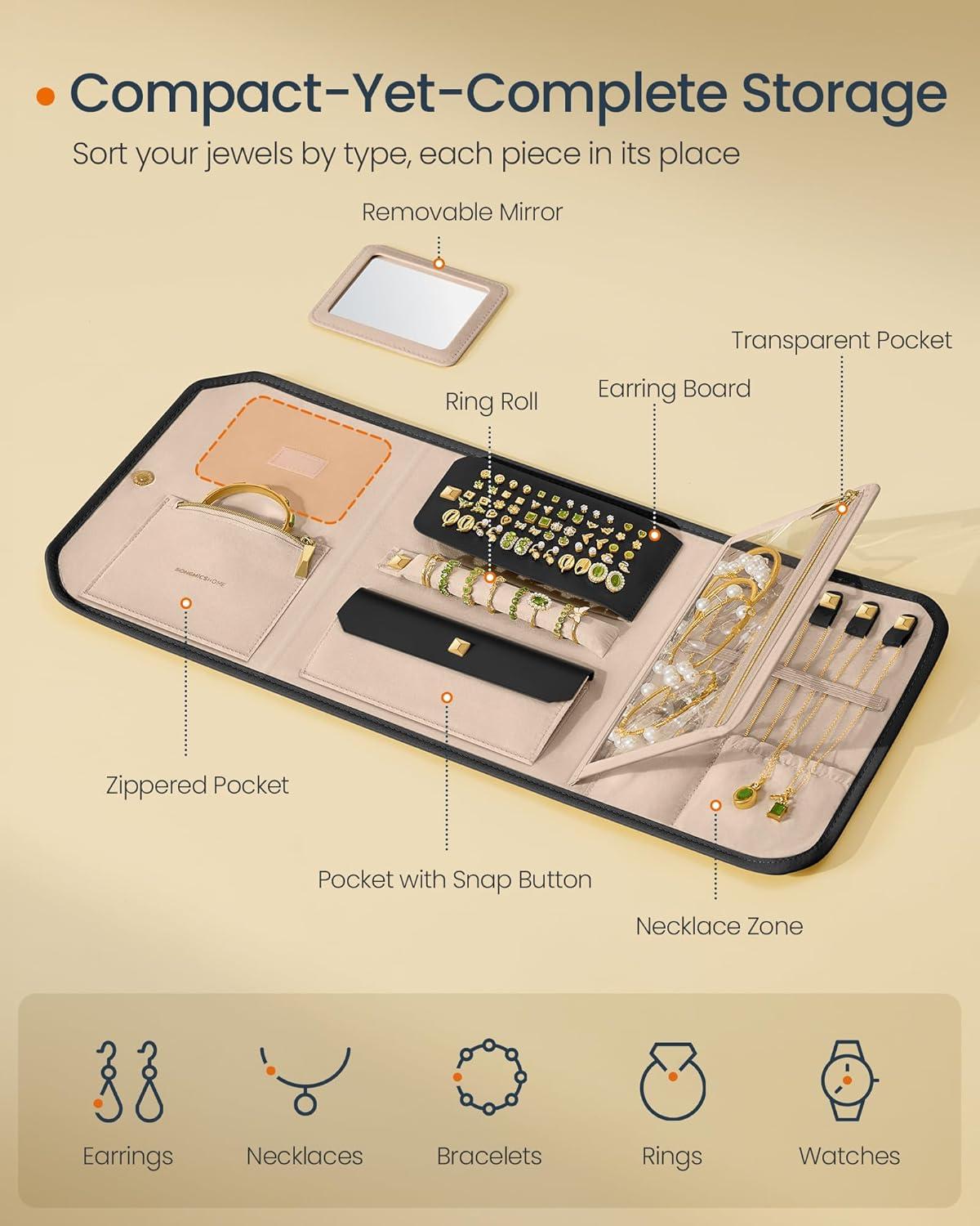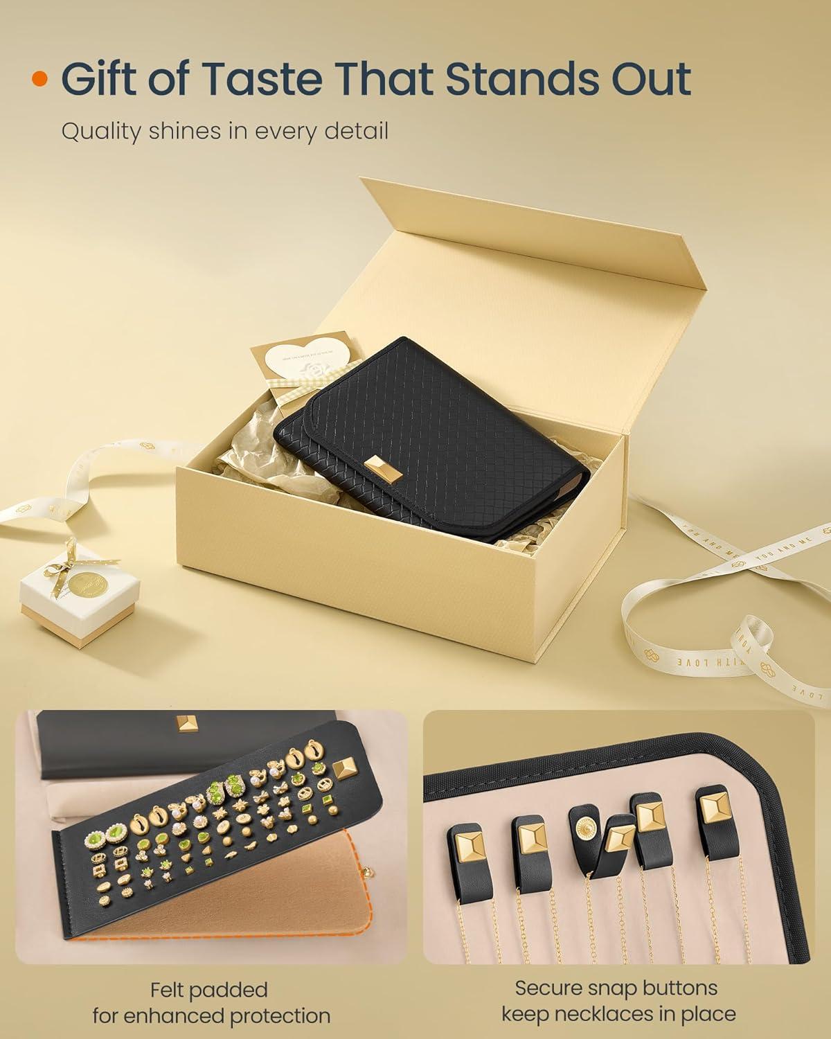 【TRAVEL LIGHT, SHINE ALWAYS】Take your jewelry on the go with this compact travel jewelry organizer at 9.4″ x 6.9″ x 1.3″. Whether for business travel or just a day out, it slips effortlessly into your bag or luggage, letting you sparkle wherever you go