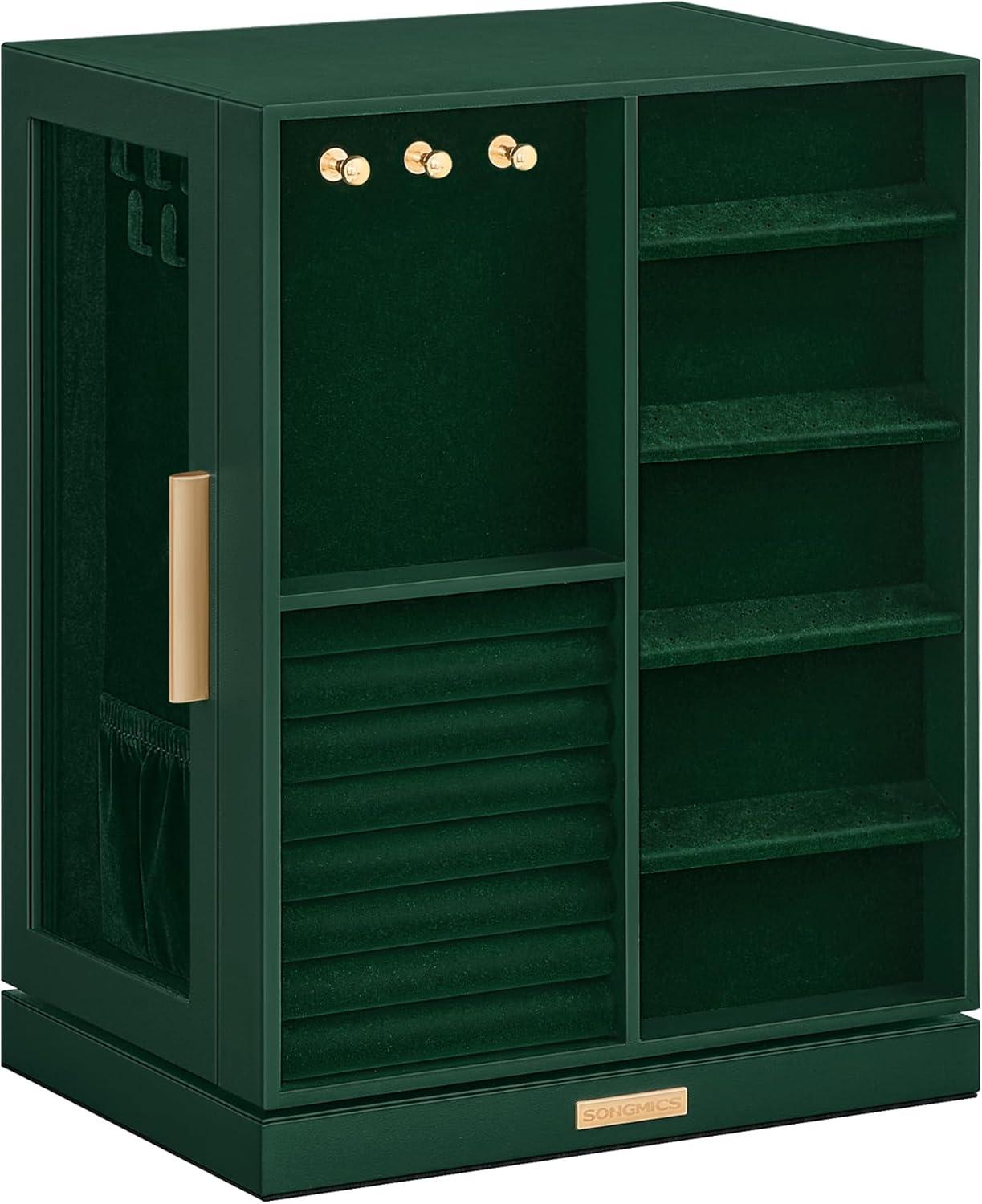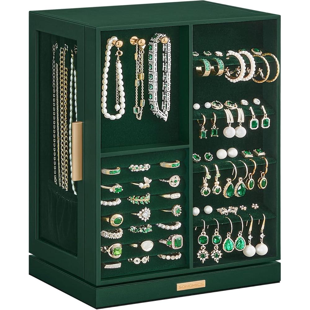 SONGMICS Jewelry Box 360° Rotating, Jewelry Storage Case with 5 Drawers, Jewelry Organizer, Glass Window, Spacious, Vertical Jewelry Storage, Open Design, Great Gift, Cloud White UJBC170W01(Forest Green)