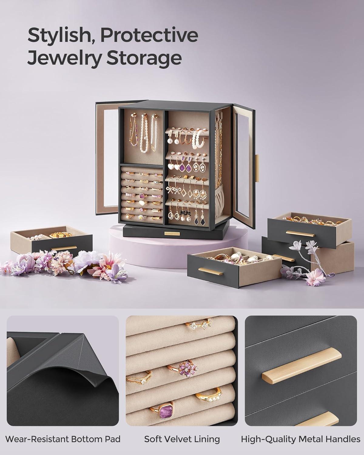 [Perfect Gift Idea] Present your loved ones with the gift of this exceptional 360° rotating jewelry box on their birthday or anniversary. Or indulge yourself in this exquisite jewelry case because you truly deserve it!