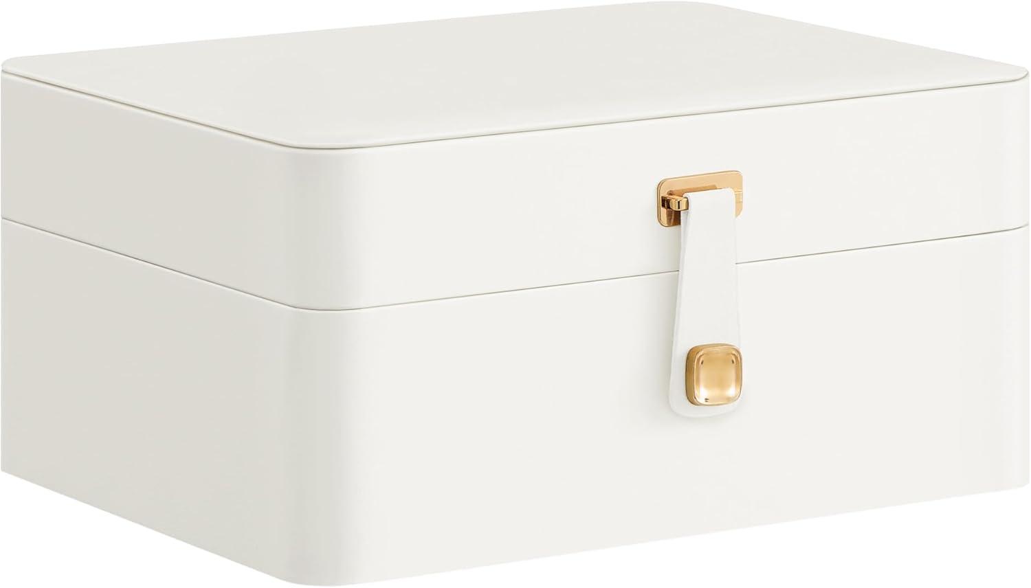 SONGMICS 6-Tier Jewelry Organizer and 3-Tier Jewelry Box Bundle, Large Storage Capacity, with Drawers and Mirror, PU Surface with Stitching, Gift, Cloud White UJBC152W01 and UJBC183W01