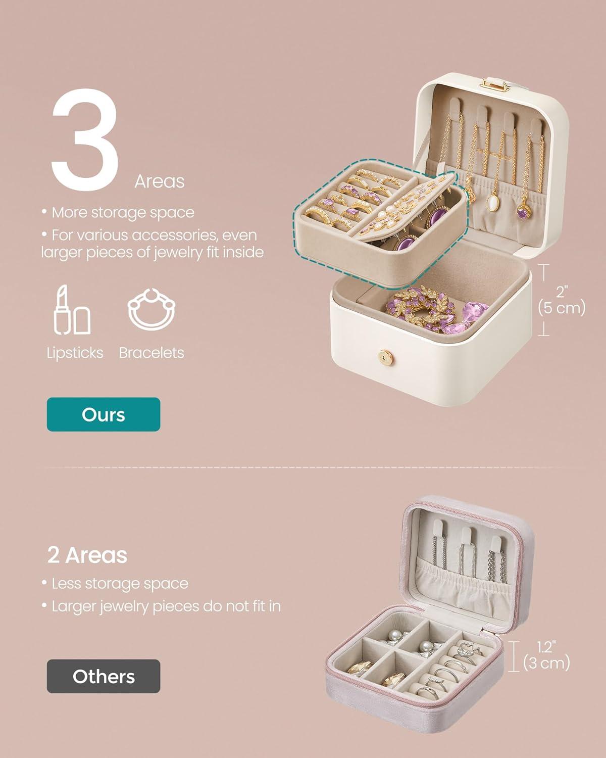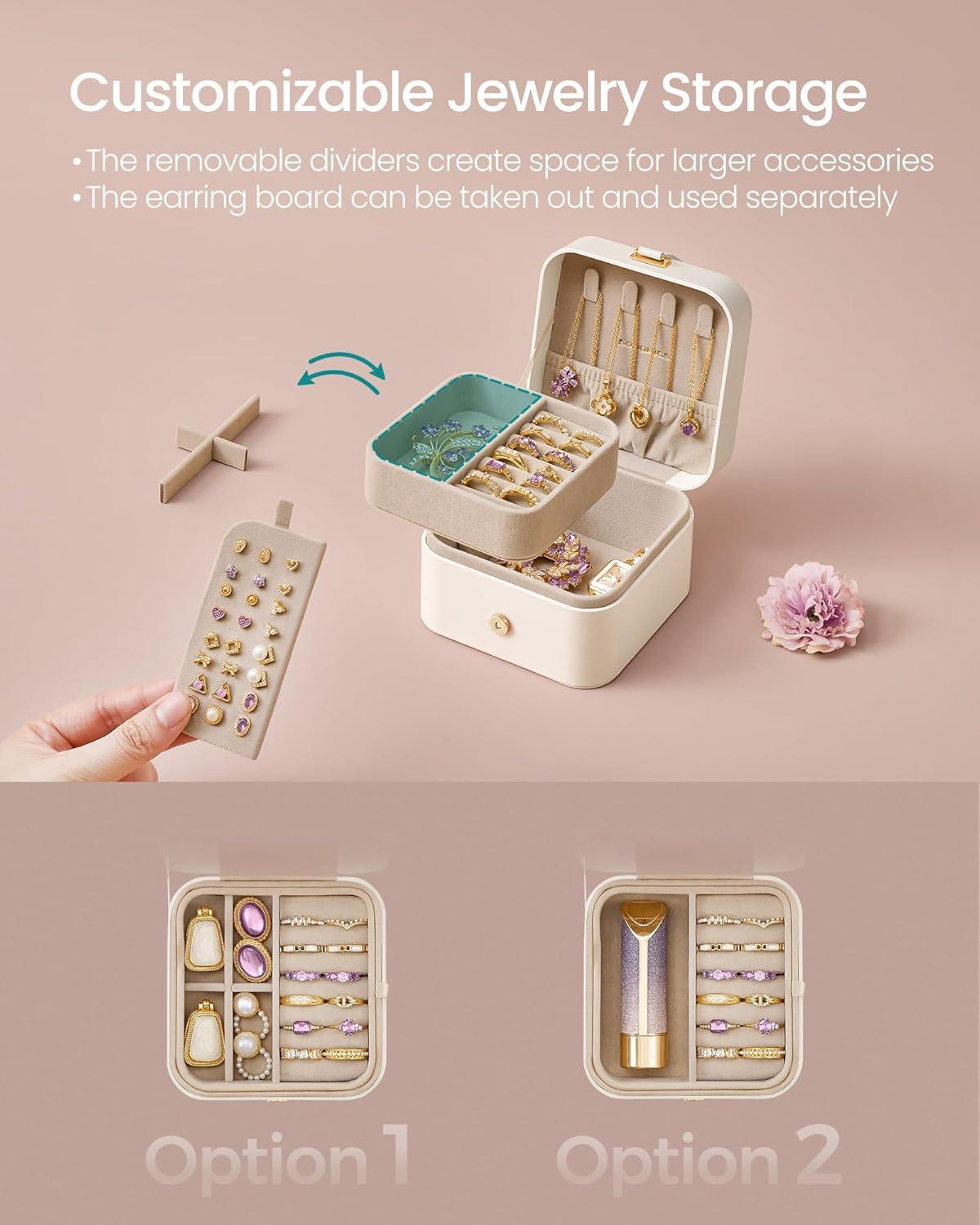 [Compact and Portable] Take your favorite jewelry pieces with you wherever you go with our compact 4.5 x 4.5 x 2.2 inches jewelry case. It easily fits in your bag or suitcase—an ideal companion!