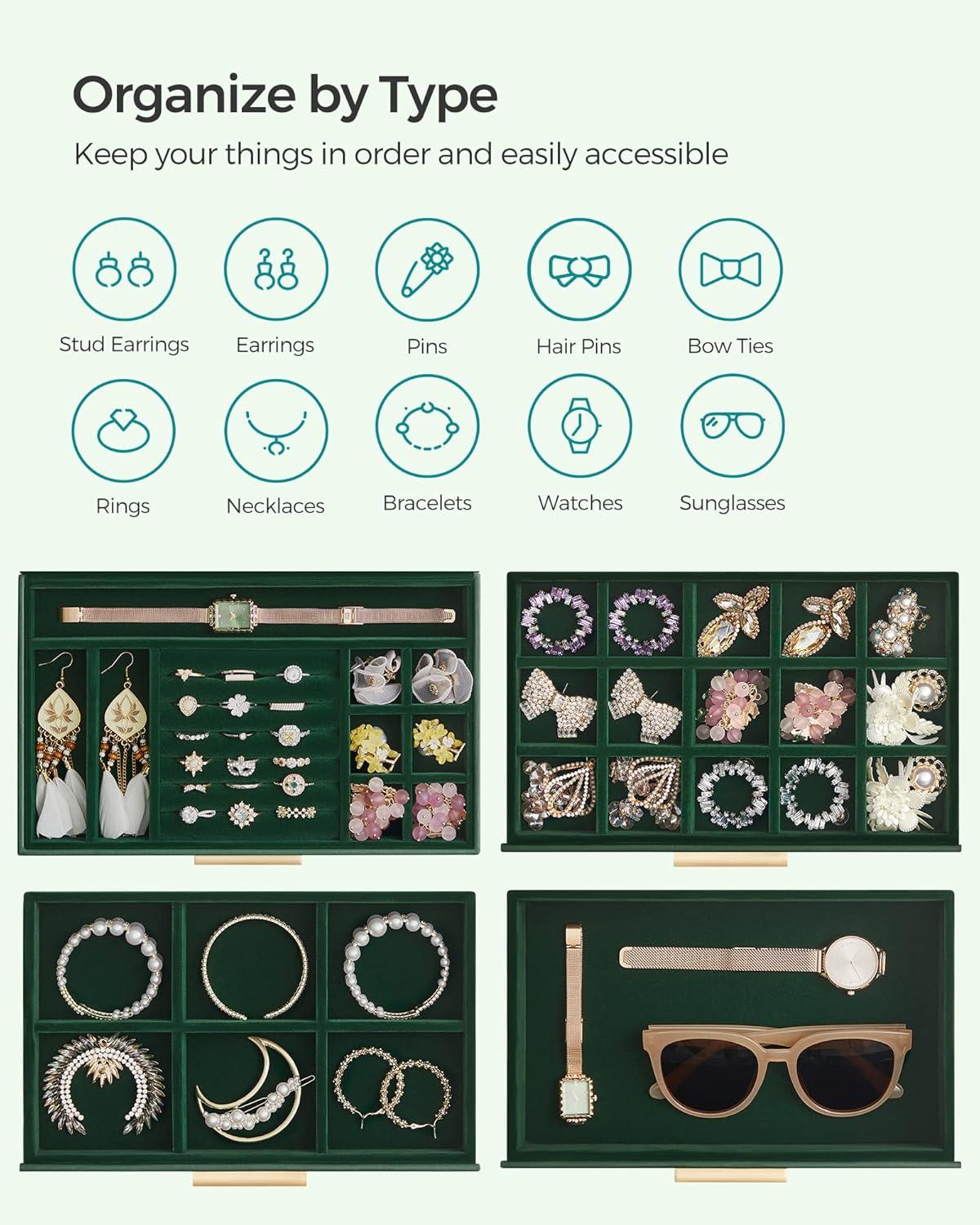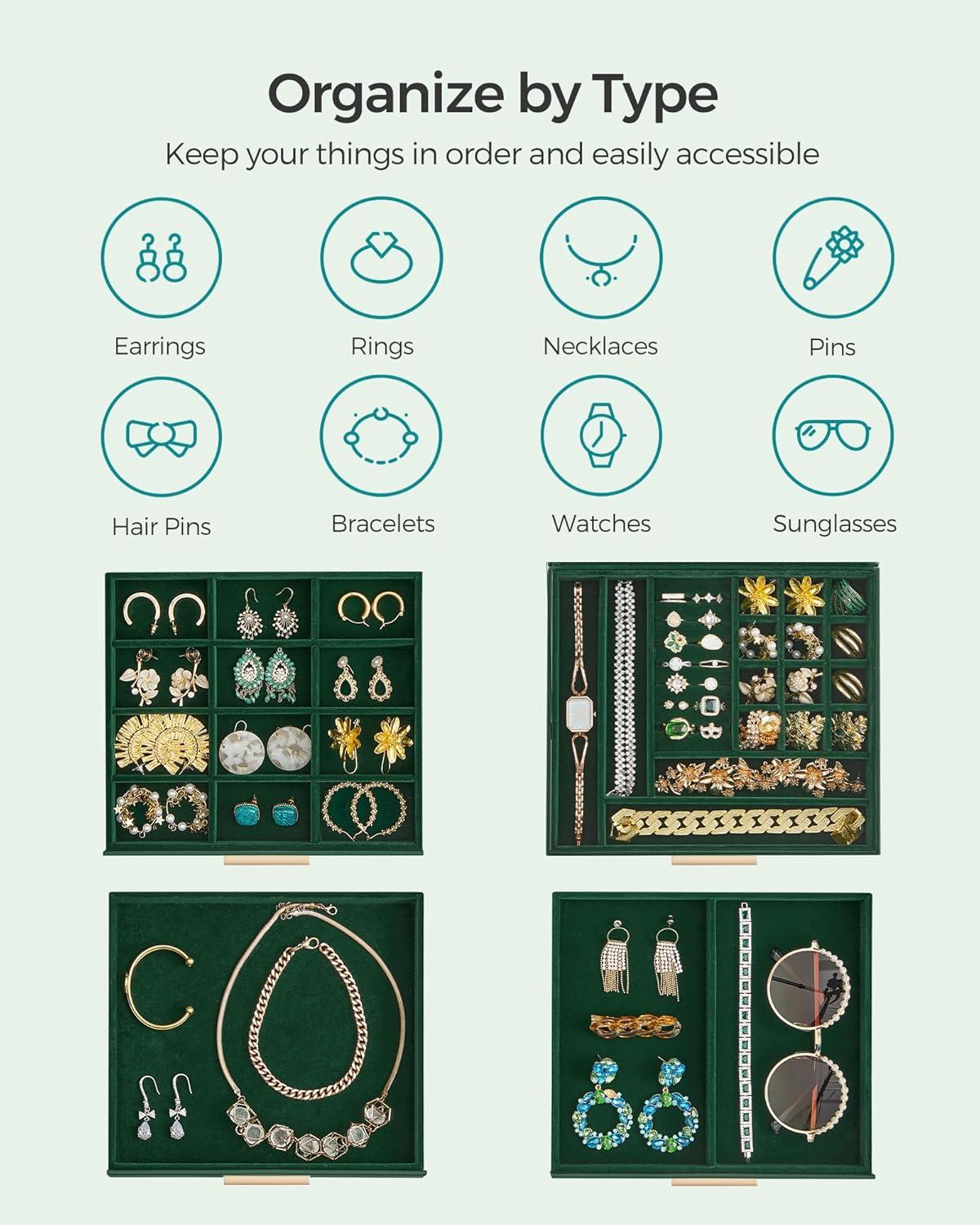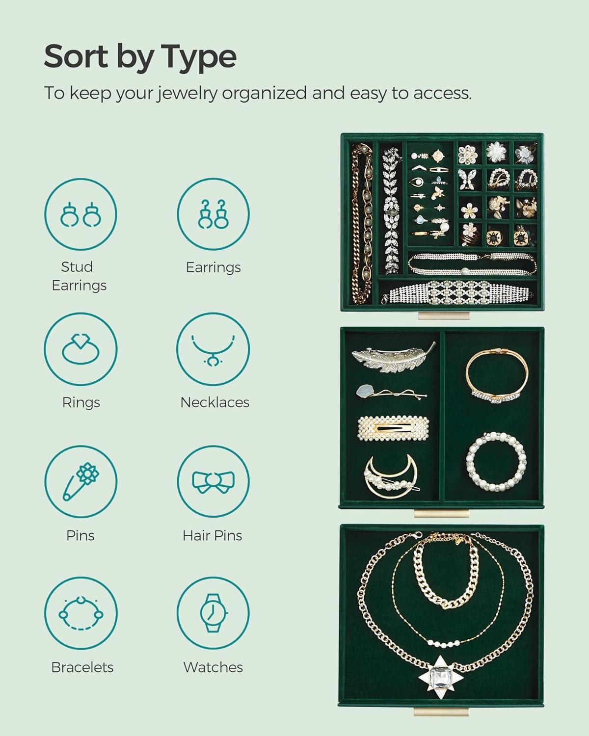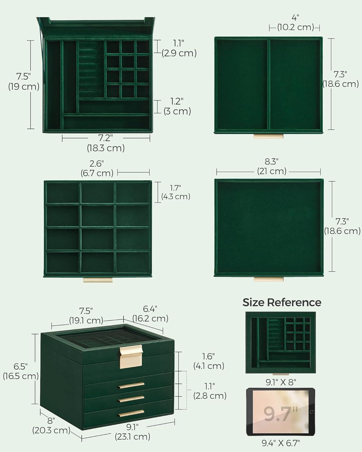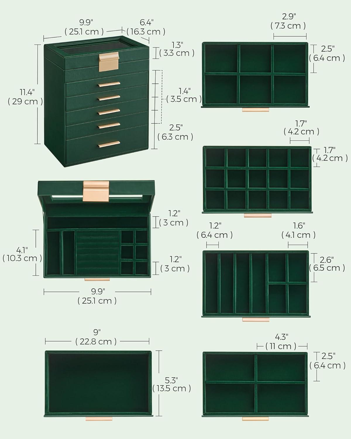 Be the first to review “SONGMICS Jewelry Box Organizer with Glass Lid, 3-Layer Jewelry Storage, with 2 Drawers, Modern Style, 8 x 9.1 x 5.3 Inches, Cloud White and Gold Color UJBC239WT(Forest Green + Gold)”