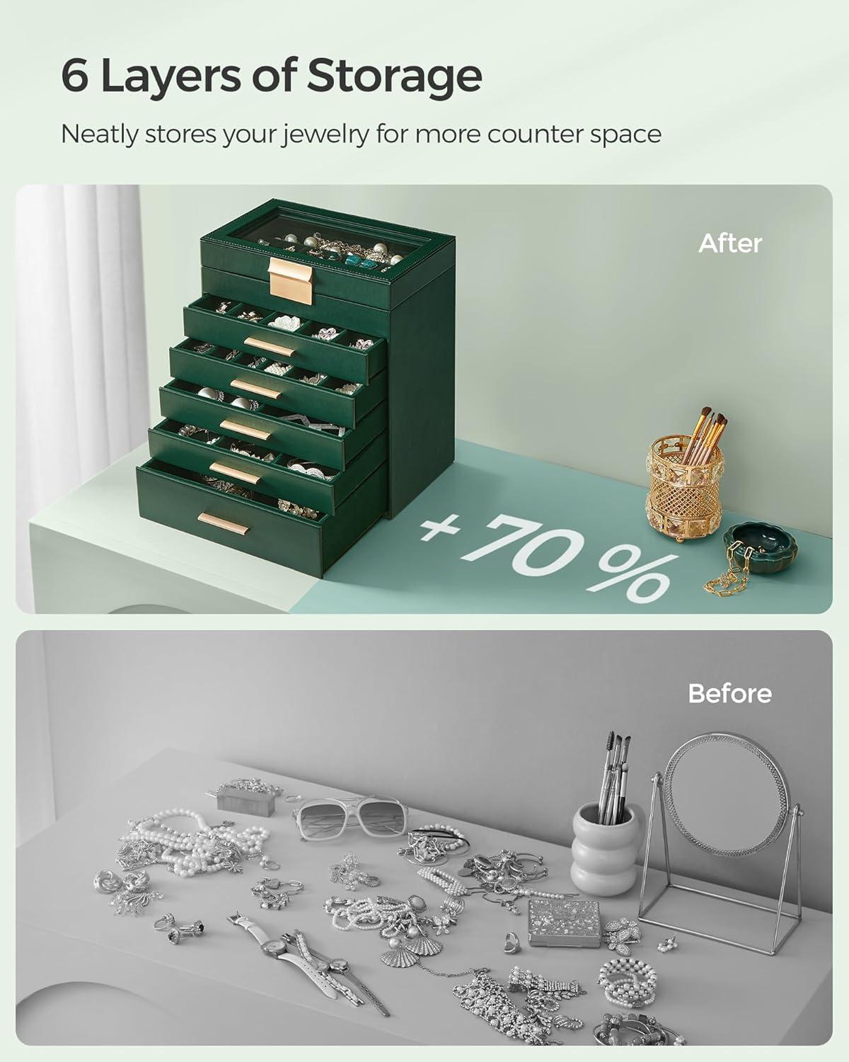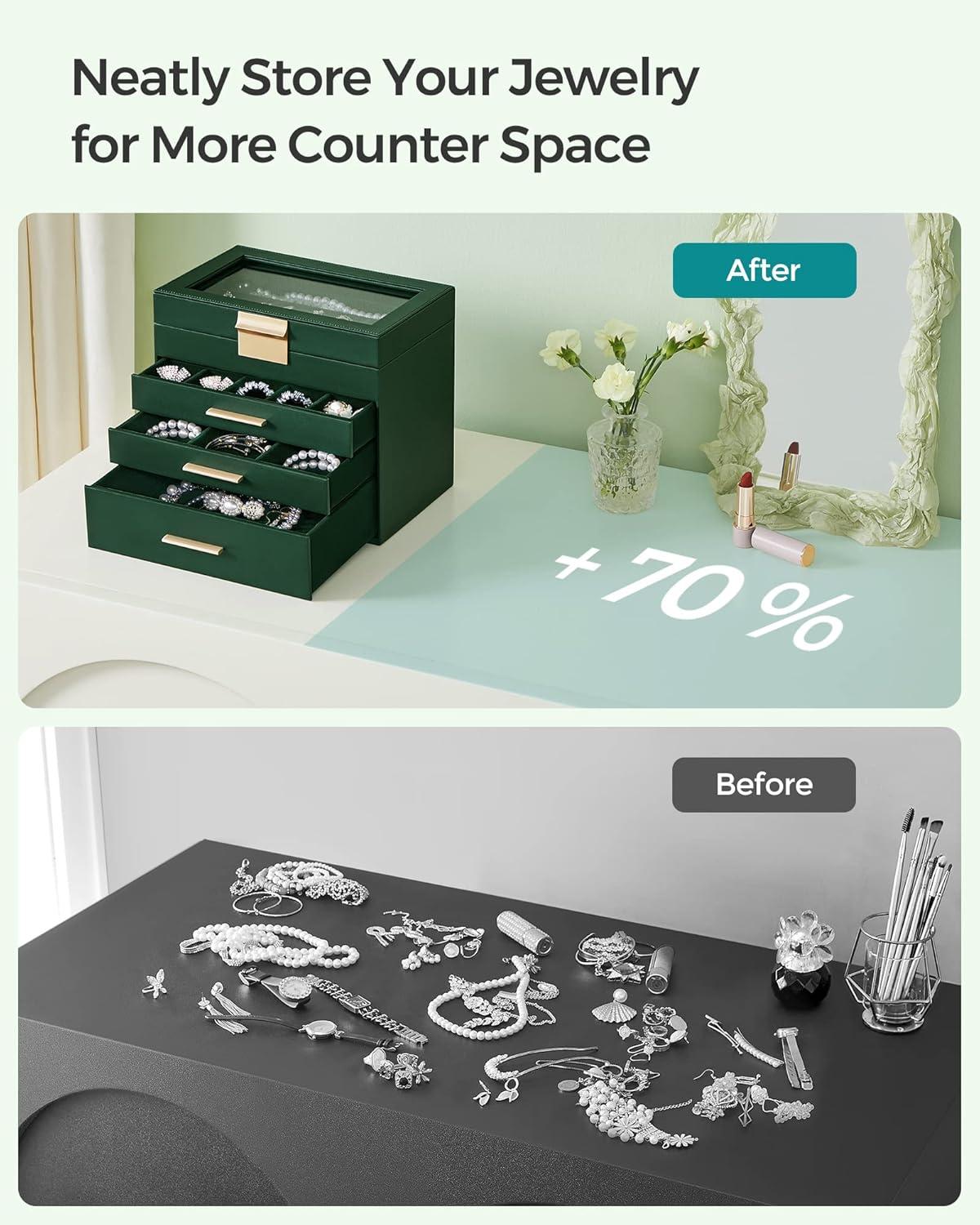 [Clear Glass Lid] The see-through glass lid of this jewelry organizer allows you to see and find your favorite jewels at a glance while protecting them from dust, keeping your jewelry ready to wear and clean