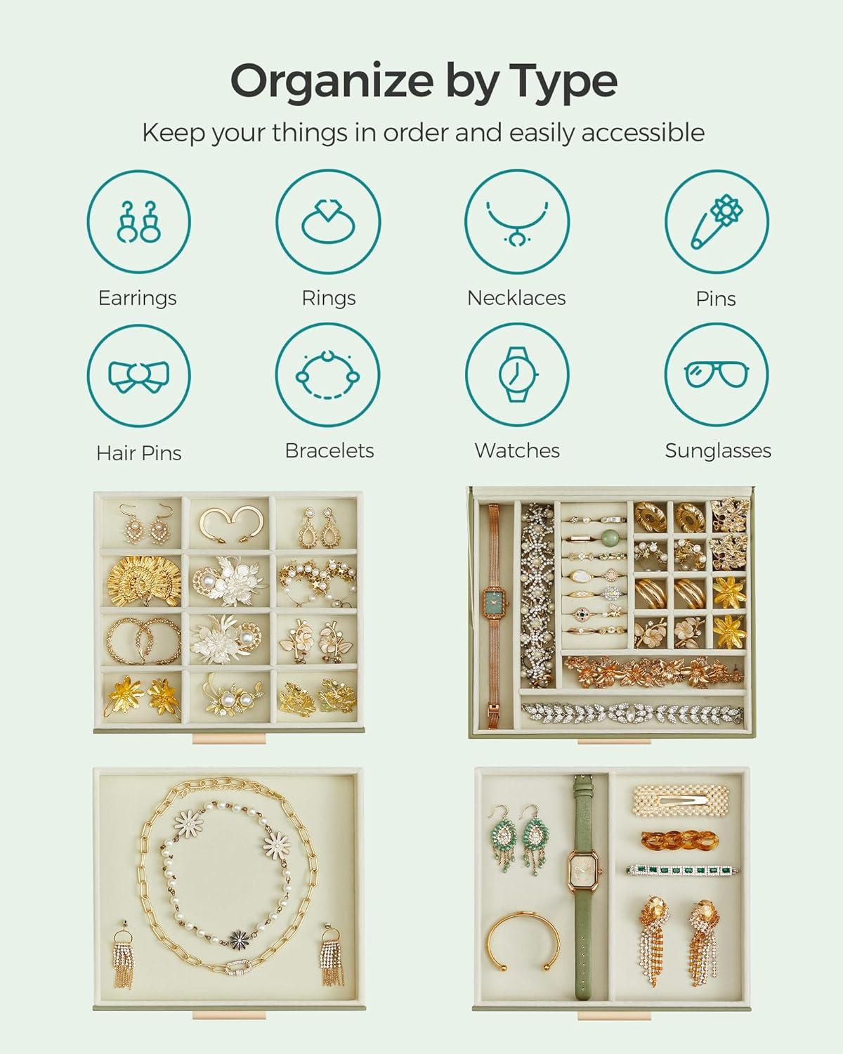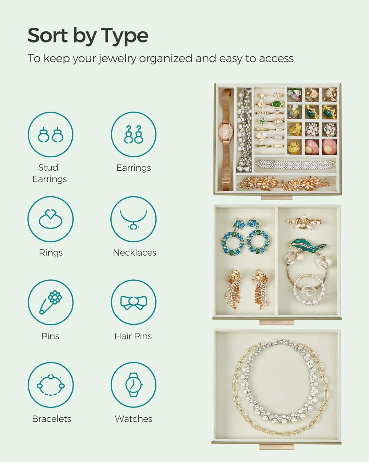 Be the first to review “SONGMICS Jewelry Box Organizer with Glass Lid, 3-Layer Jewelry Storage, with 2 Drawers, Modern Style, 8 x 9.1 x 5.3 Inches, Cloud White and Gold Color UJBC239WT(Laurel Green + Gold)”