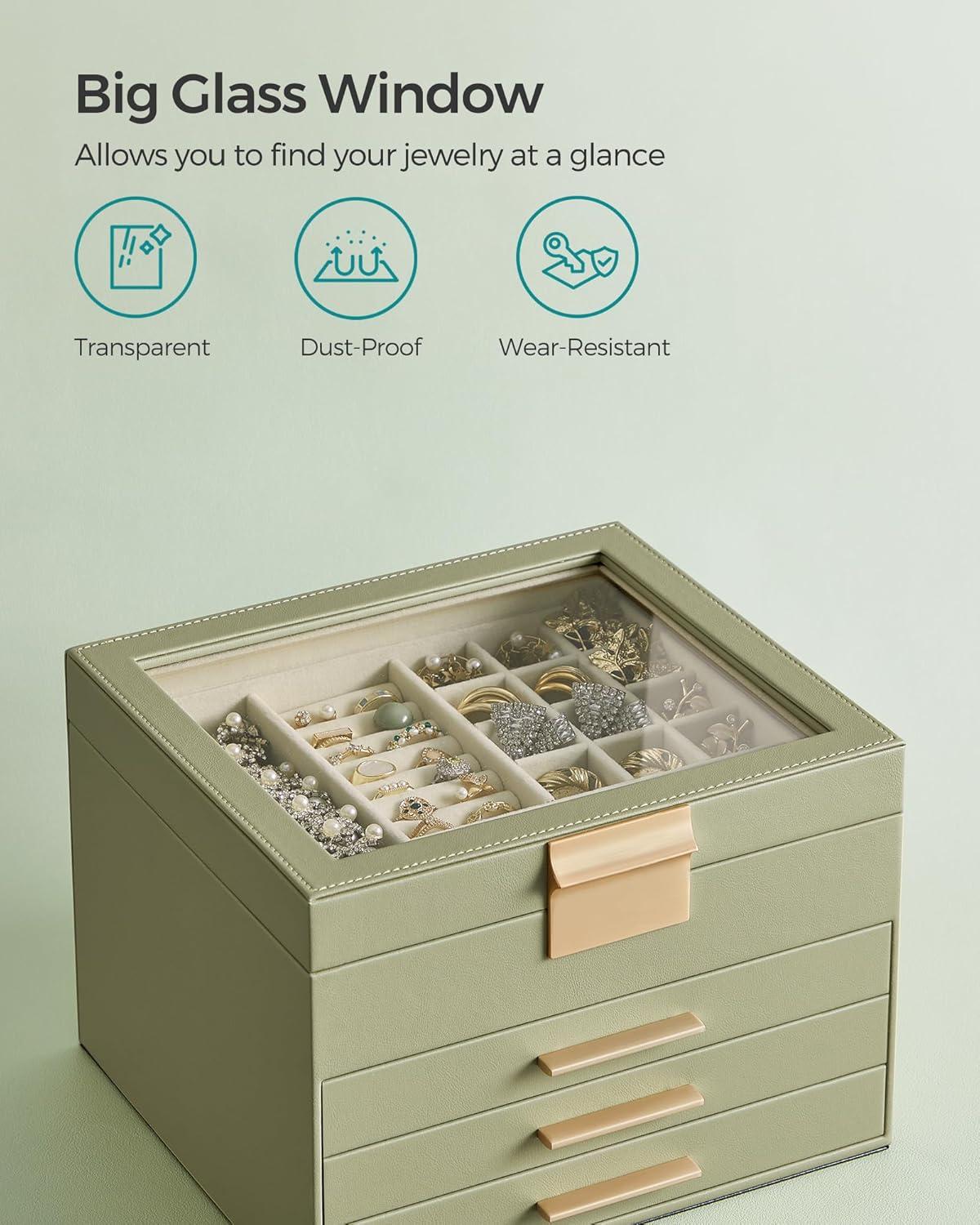 [Clear Glass Lid] The see-through glass lid of this jewelry organizer allows you to see and find your favorite jewels at a glance while protecting them from dust, keeping your jewelry ready to wear and clean