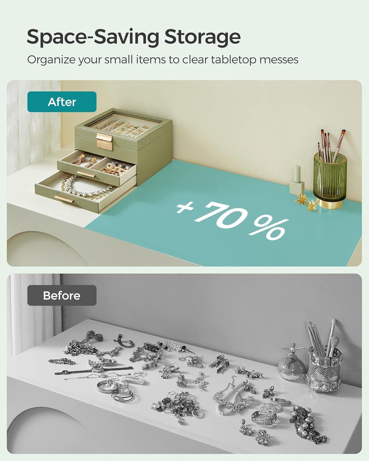 [Storage, 3 Layers] Keep all your jewelry organized in this jewelry box—small pieces of jewelry go in the various slots of the top layer, and big jewelry goes in the bottom 2 drawers