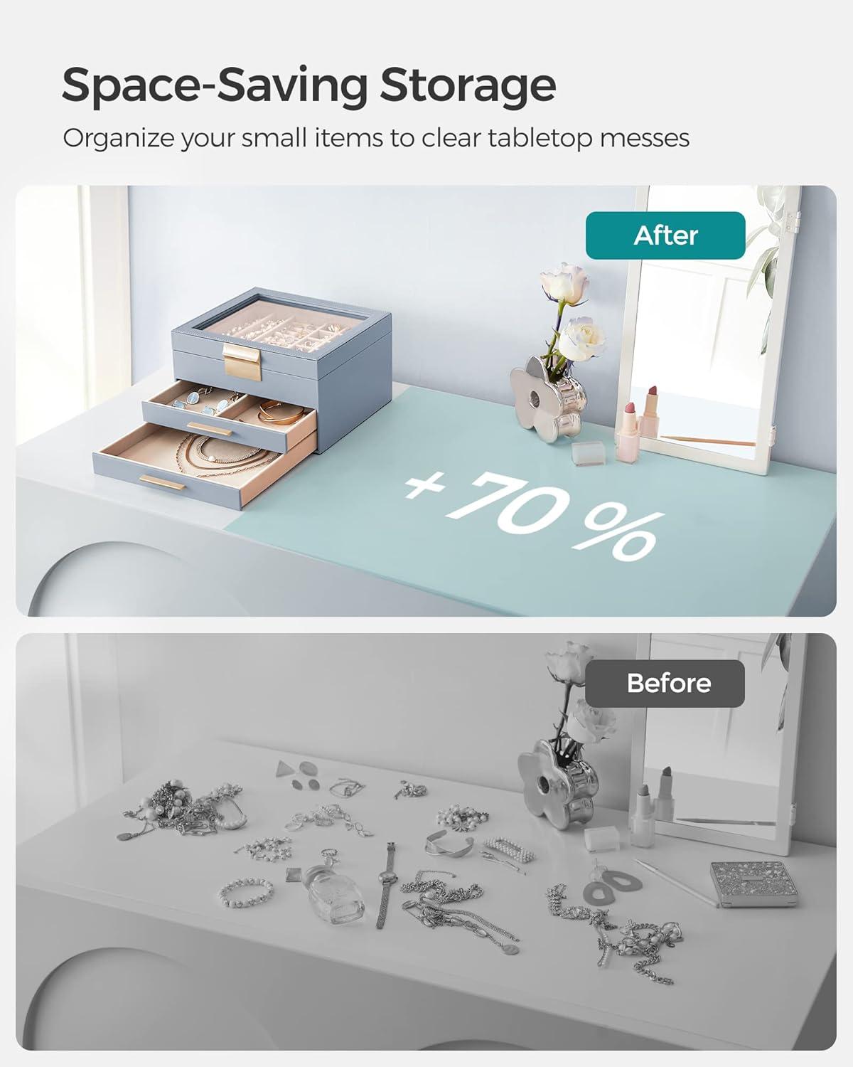 [Storage, 3 Layers] Keep all your jewelry organized in this jewelry box—small pieces of jewelry go in the various slots of the top layer, and big jewelry goes in the bottom 2 drawers