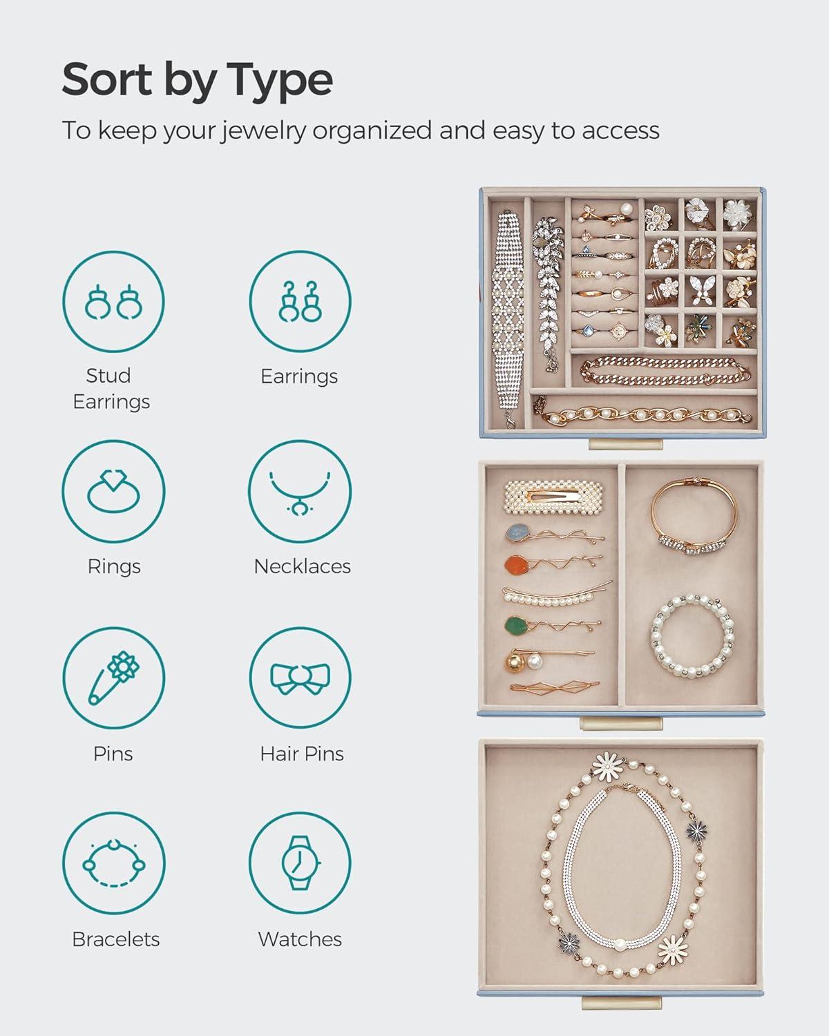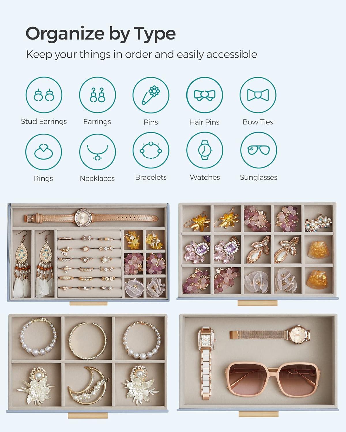 Be the first to review “SONGMICS Jewelry Box Organizer with Glass Lid, 3-Layer Jewelry Storage, with 2 Drawers, Modern Style, 8 x 9.1 x 5.3 Inches, Cloud White and Gold Color UJBC239WT(Smoky Blue + Gold)”