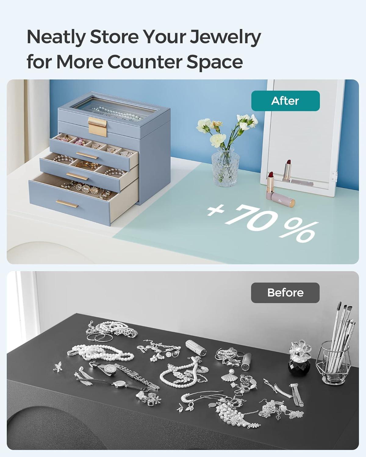 [Clear Glass Lid] The see-through glass lid of this jewelry organizer allows you to see and find your favorite jewels at a glance while protecting them from dust, keeping your jewelry ready to wear and clean