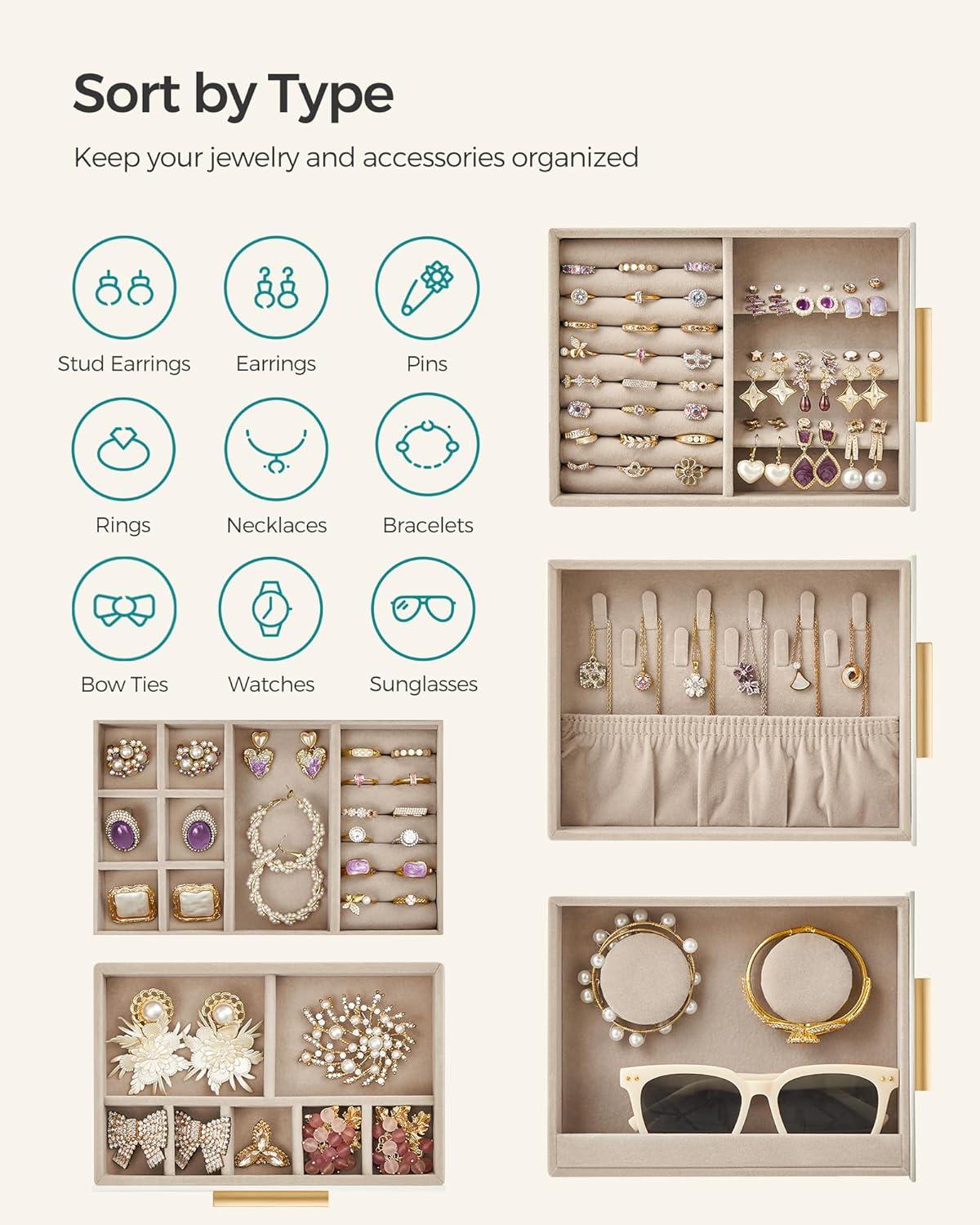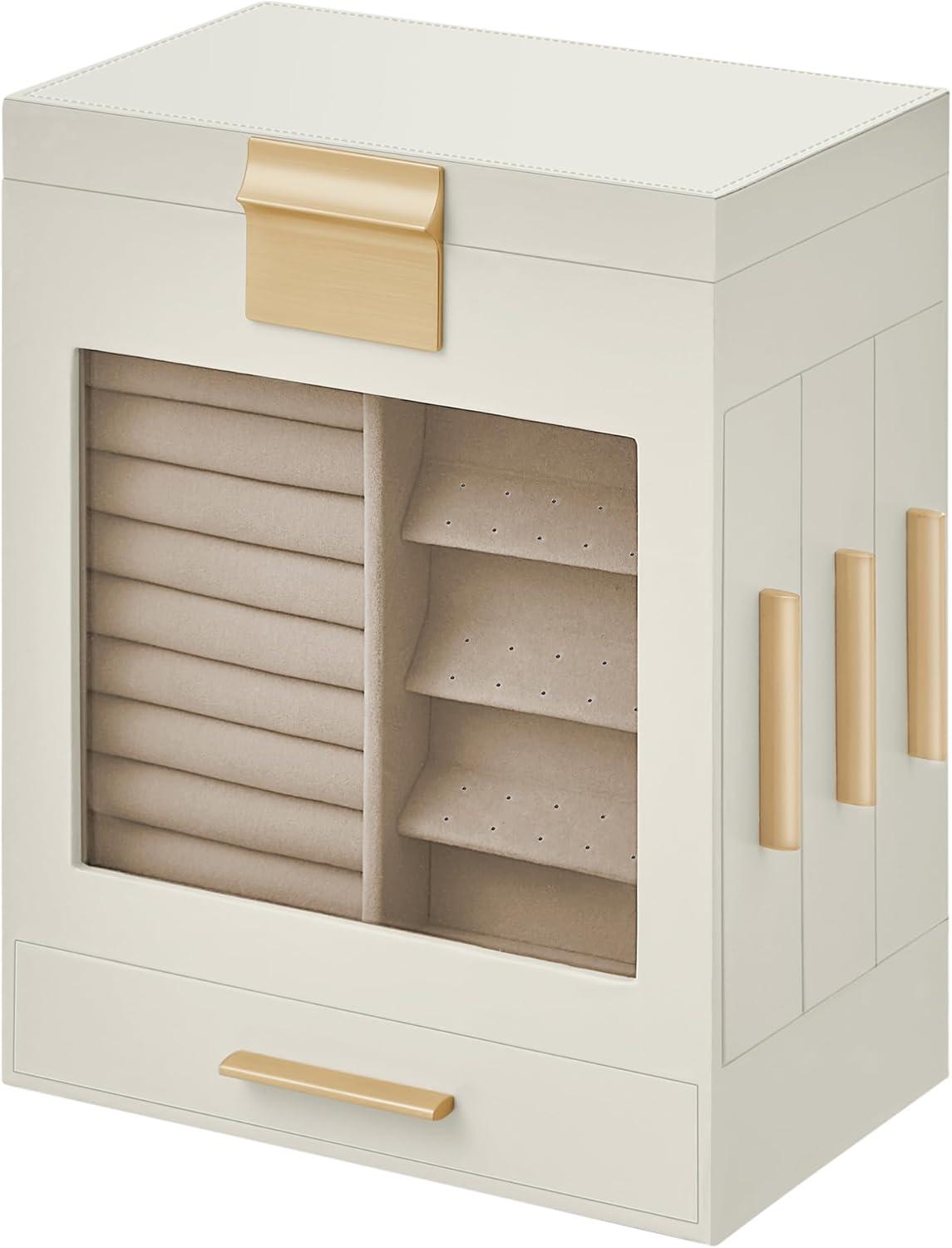 imageSONGMICS Jewelry Box 360 Rotating and PU Travel Jewelry Box Bundle Jewelry Storage Case with 5 Drawers Jewelry Organizer Glass Window Gift Cloud White UJBC170W01 and UJBC180W01