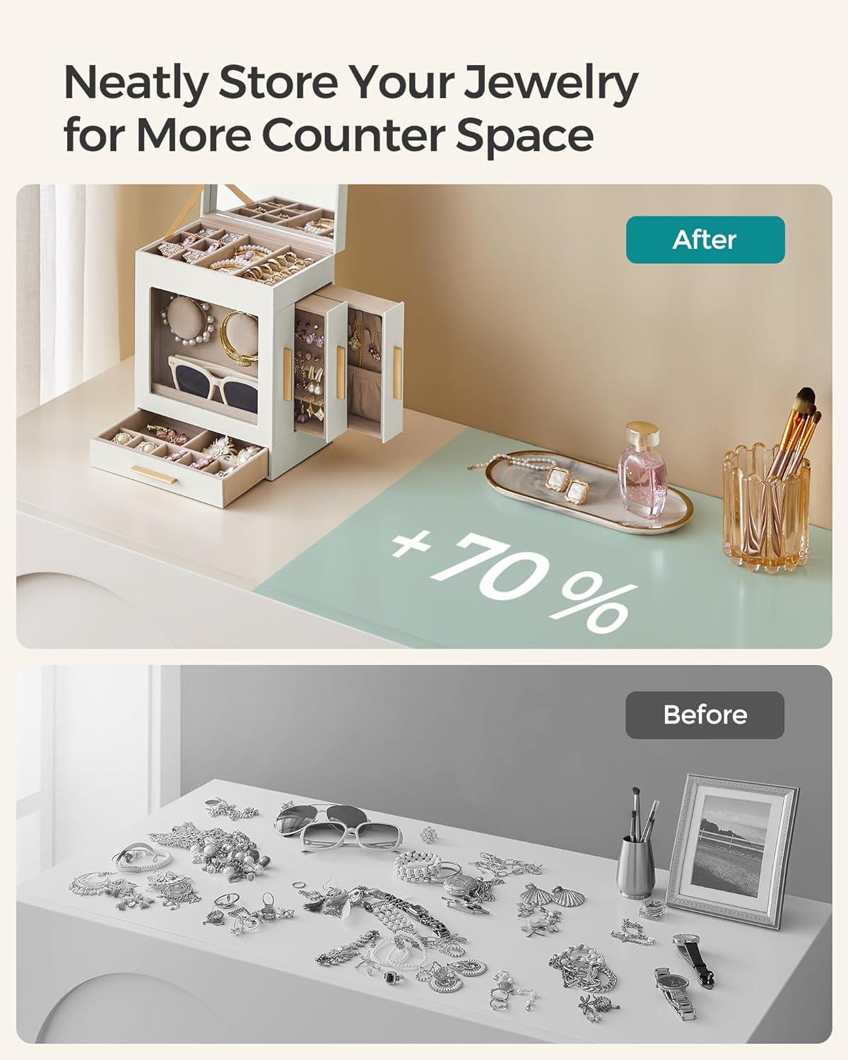 [Built-In Big Mirror] The big mirror inside this jewelry organizer makes it easy for you to put on your jewelry and check your look when primping yourself up in the morning, saving your precious morning time