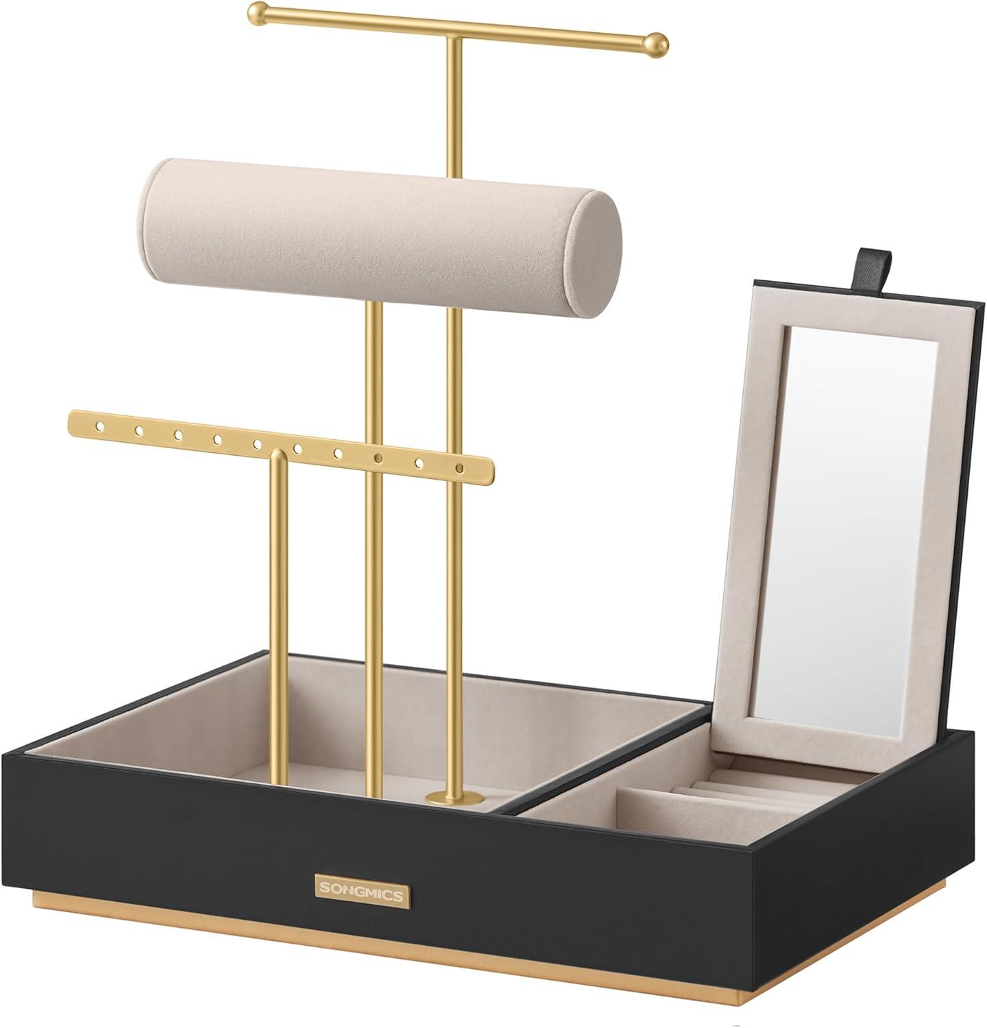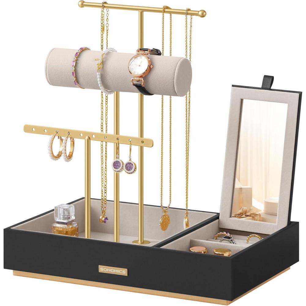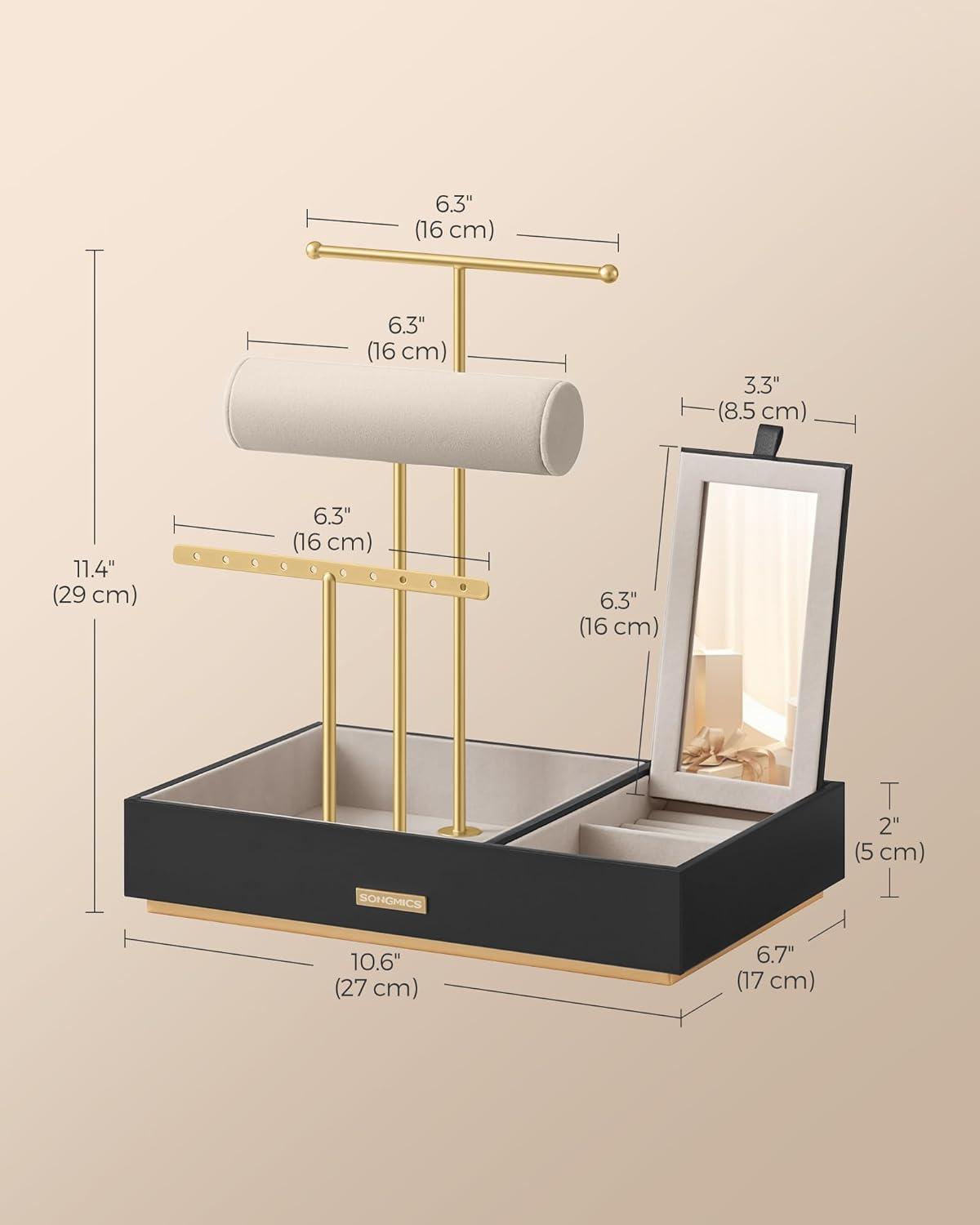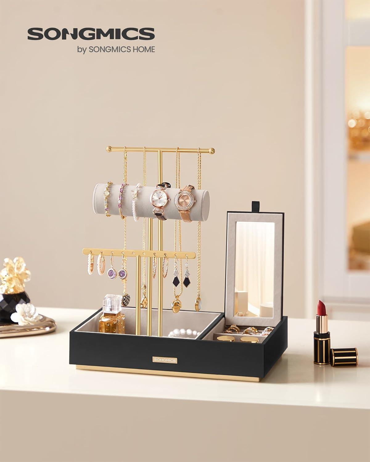 [Convenient Small Mirror] The small flip-up mirror allows you to quickly complement your outfit with the perfect accessory. It also acts as a lid to protect your jewelry from dust and can be removed to use separately as a portable mini mirror