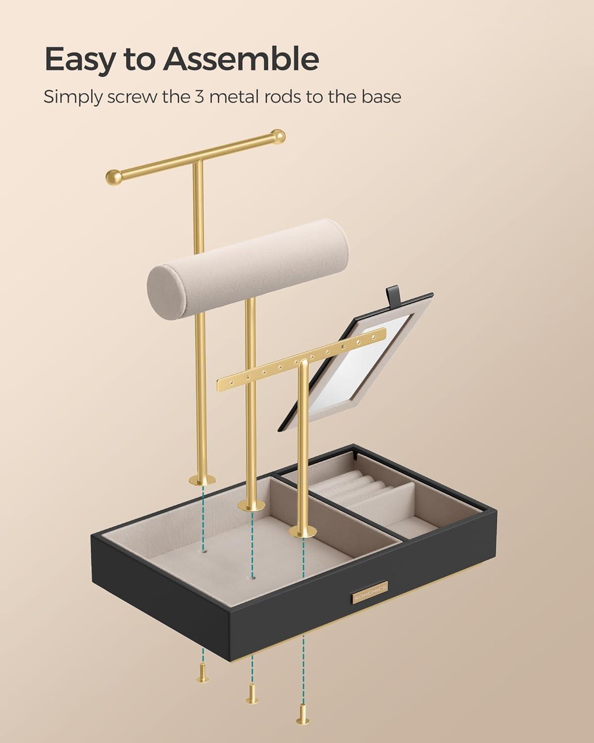 [Effortless Assembly, Elegant Gifting] Assembly is a breeze with this display rack: just attach the 3 bars to the base and it's all set! The chic design is further enhanced by a gold logo on the front, making this jewelry holder a smile-inducing gift