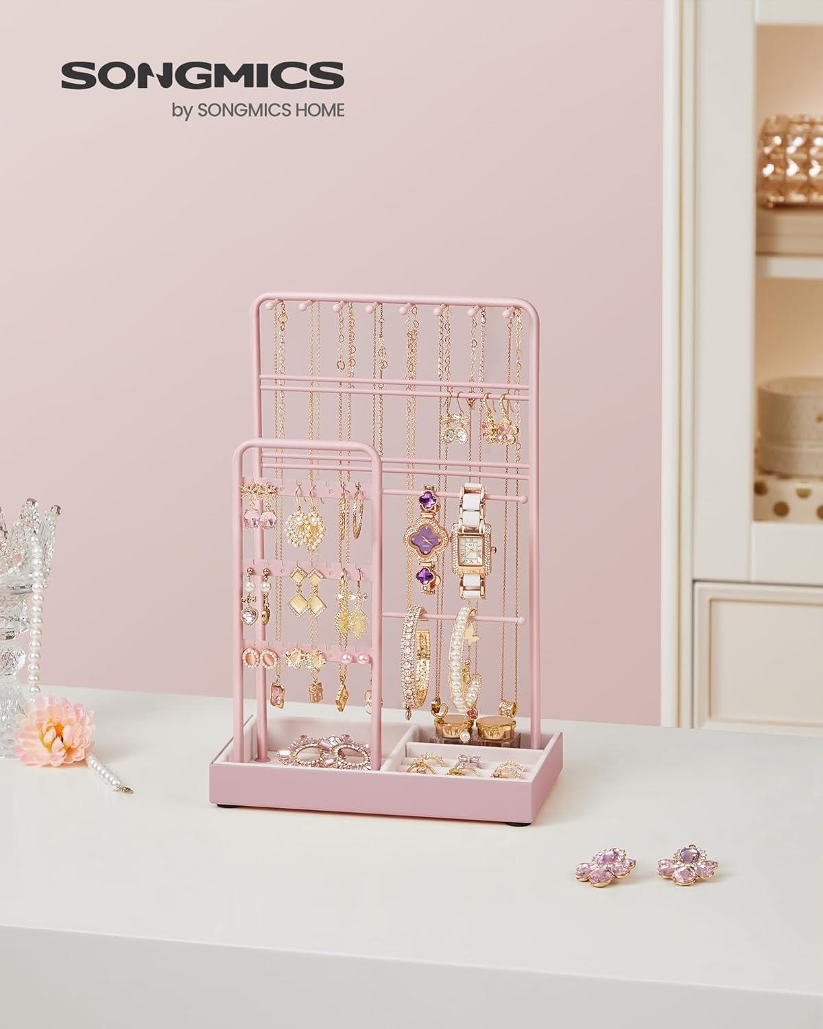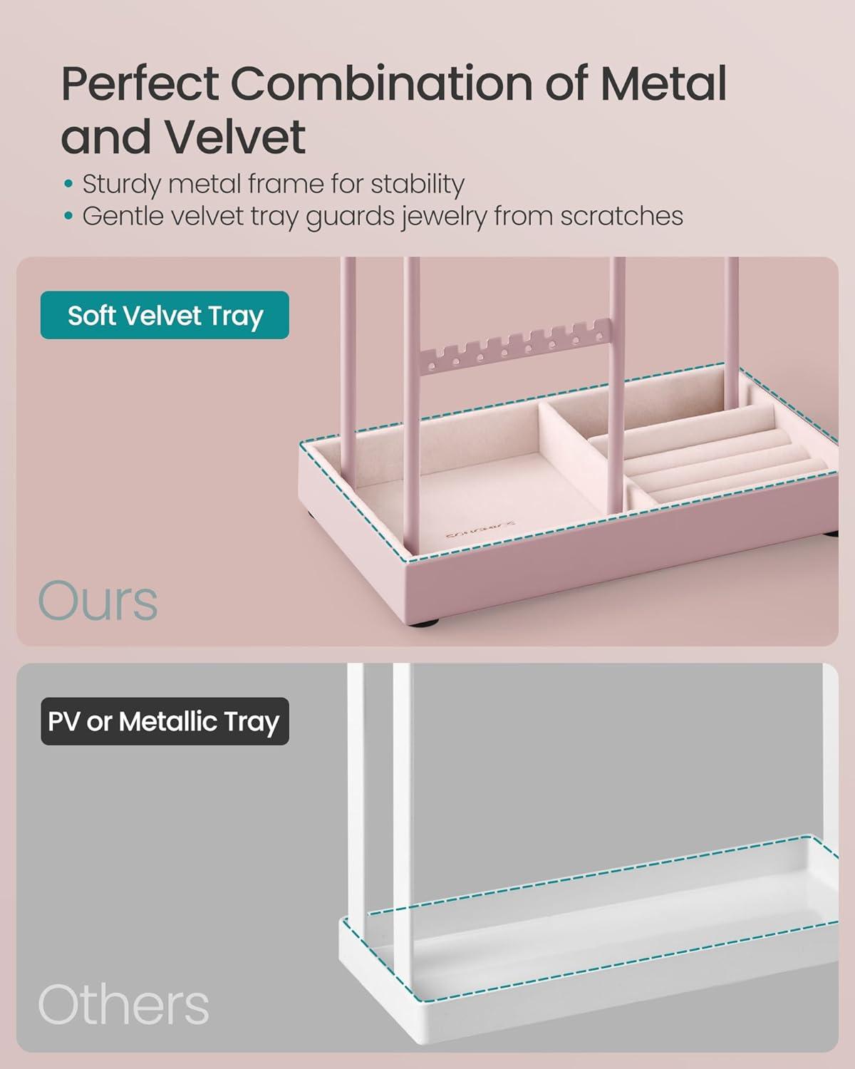 [Sturdy Metal Plus Protective Velvet] The sturdy metal frame allows this jewelry display stand to remain stable even when storing lots of jewelry. The base is velvet-wrapped to protect your cherished jewels from scratches