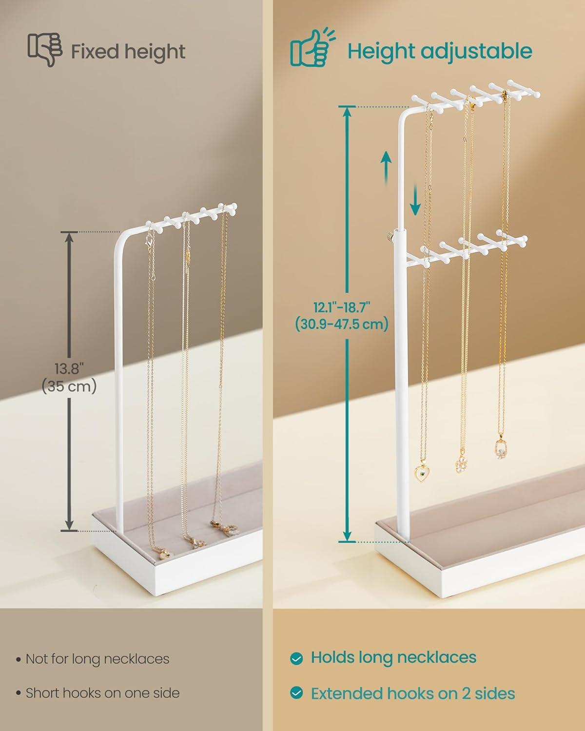 Adjustable Necklace Holder: The necklace rack extends up to 18.7″, which is 4.9″ taller than standard holders, making it perfect for storing long necklaces and other jewelry pieces
