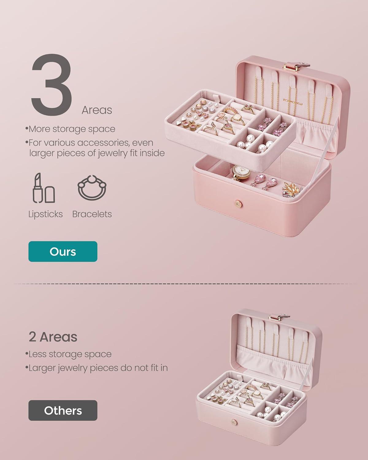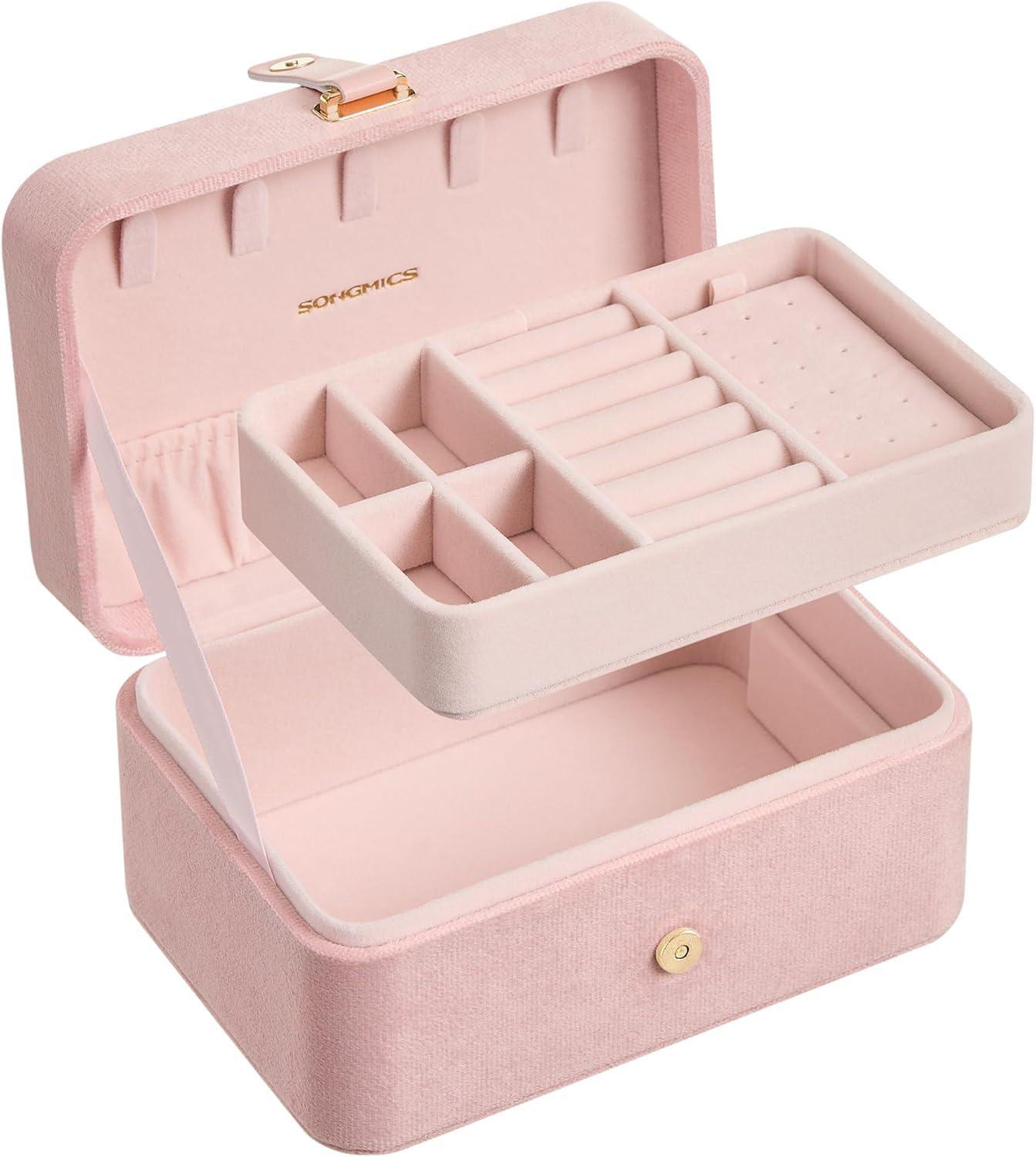 imageSONGMICS Jewelry Organizer Box Travel Jewelry Case 2Layer Travel Case for Earrings Necklaces Bracelets  Portable Jewelry Storage with Large Capacity Gift Idea Cloud White UJBC166W01Jelly Pink