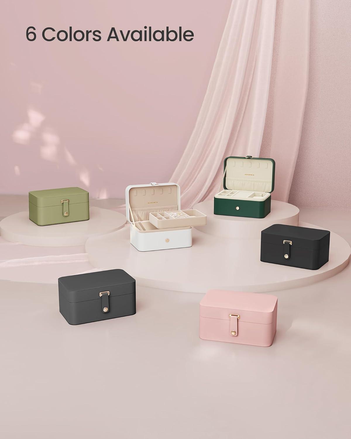 SONGMICS Jewelry Organizer Box, Travel Jewelry Case, 2-Layer Travel Case for Earrings, Necklaces, Bracelets – Portable Jewelry Storage with Large Capacity, Gift Idea, Cloud White UJBC166W01(Laurel Green)