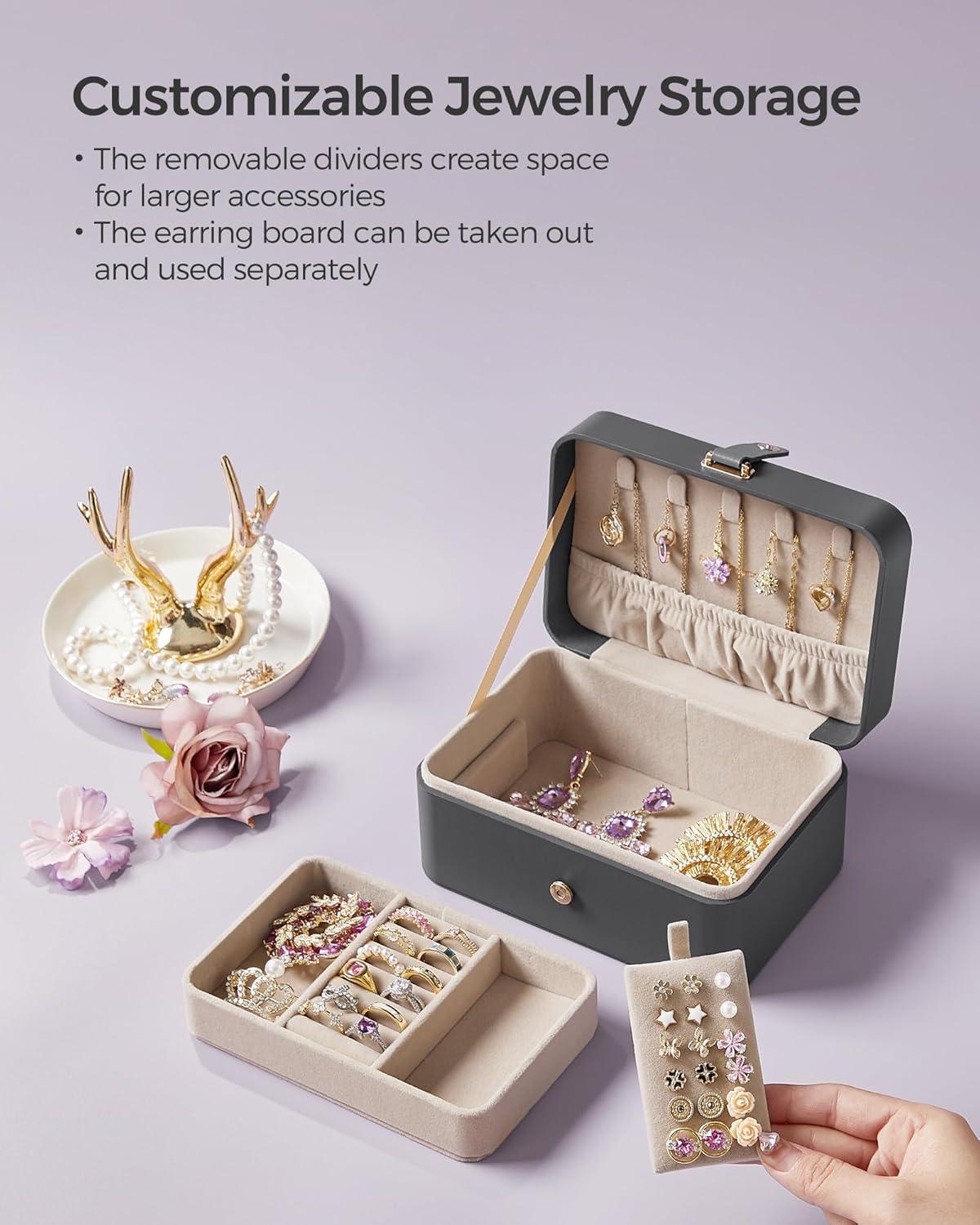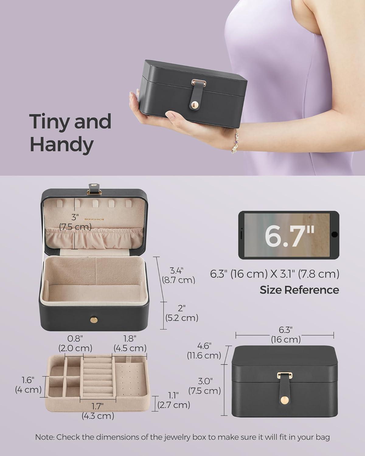 [Compact and Portable] Our 4.6 x 6.3 x 3 inches jewelry case easily fits in your bag or suitcase, allowing you to bring your favorite pieces on the go. Perfect for travel or business trips. Pack and carry with ease!