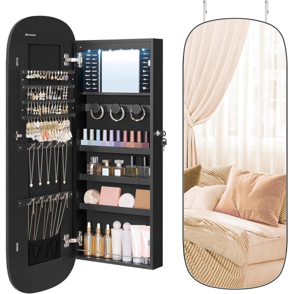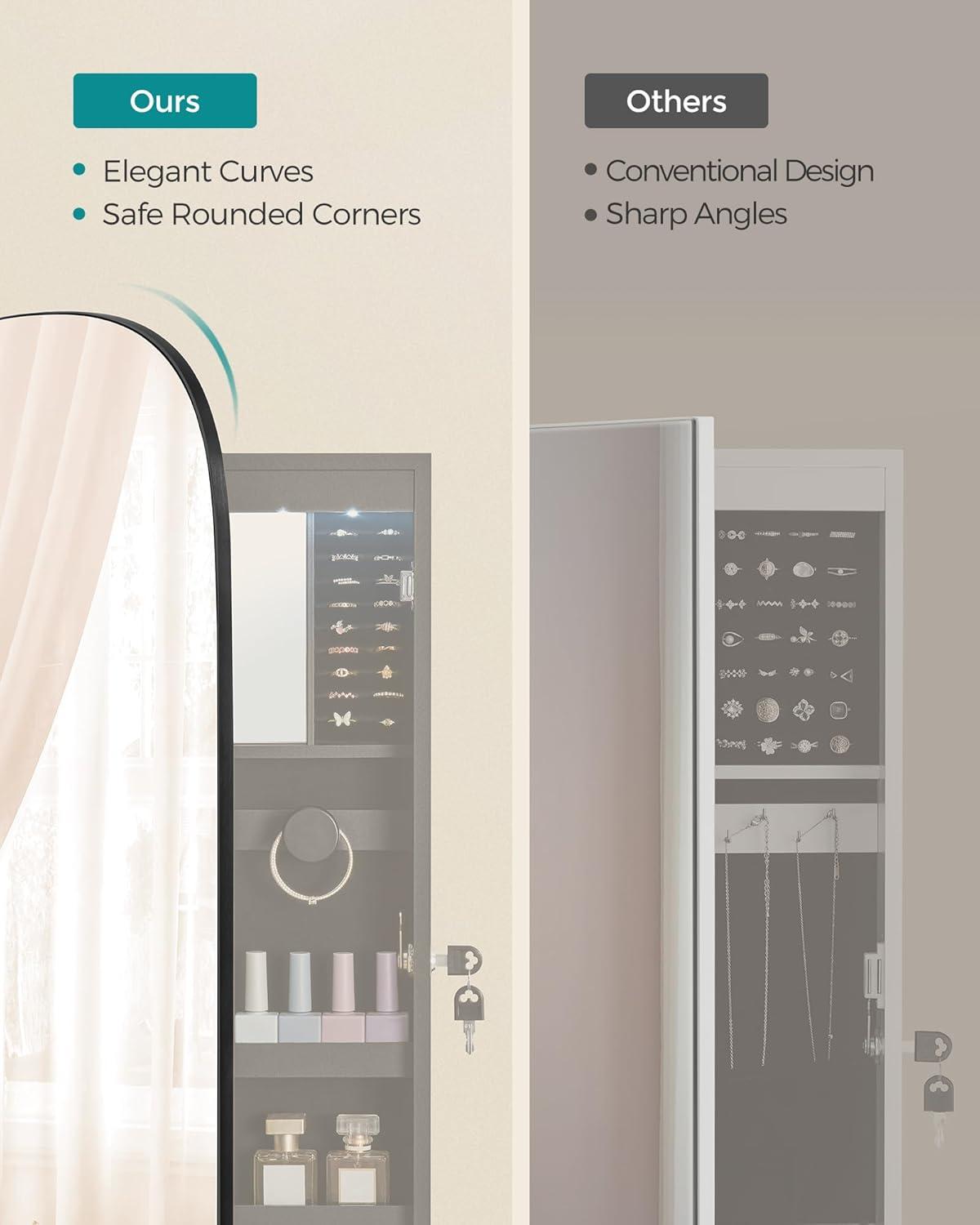 Light-Up Interior Mirror: This jewelry cabinet features an interior mirror with natural-looking LED lights, allowing you to check your look and apply makeup without constantly opening and closing the cabinet door