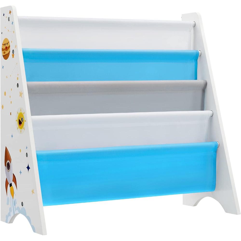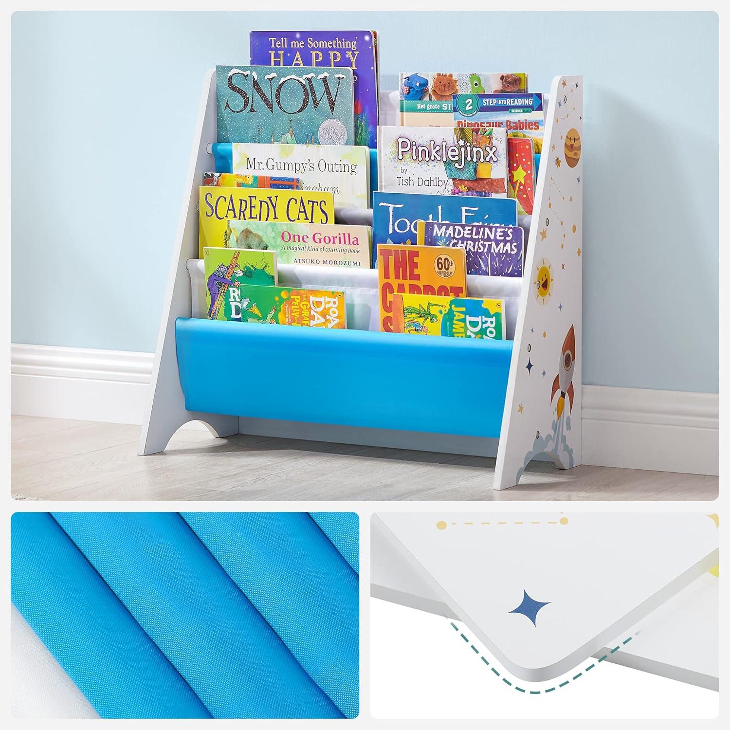 SONGMICS Kids’ Bookcase, Book Organizer, with Anti-Tip Kit, Storage Shelf for Children's Room, Playroom, School, Space-Saving Design, White, Blue and Gray UGKR72WT 11D x 24.6W x 23.6H in