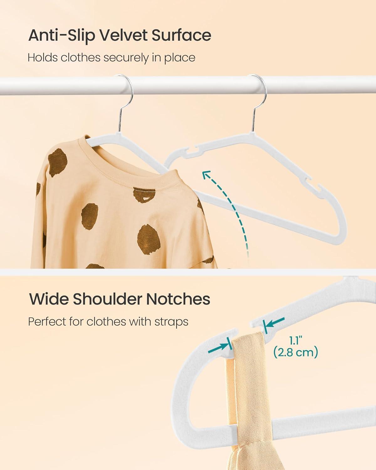 【NON-SLIP SURFACE】The soft velvet surface of these closet hangers prevents clothes from slipping off, ensuring that your little one's outfits stay neatly in place and off the floor