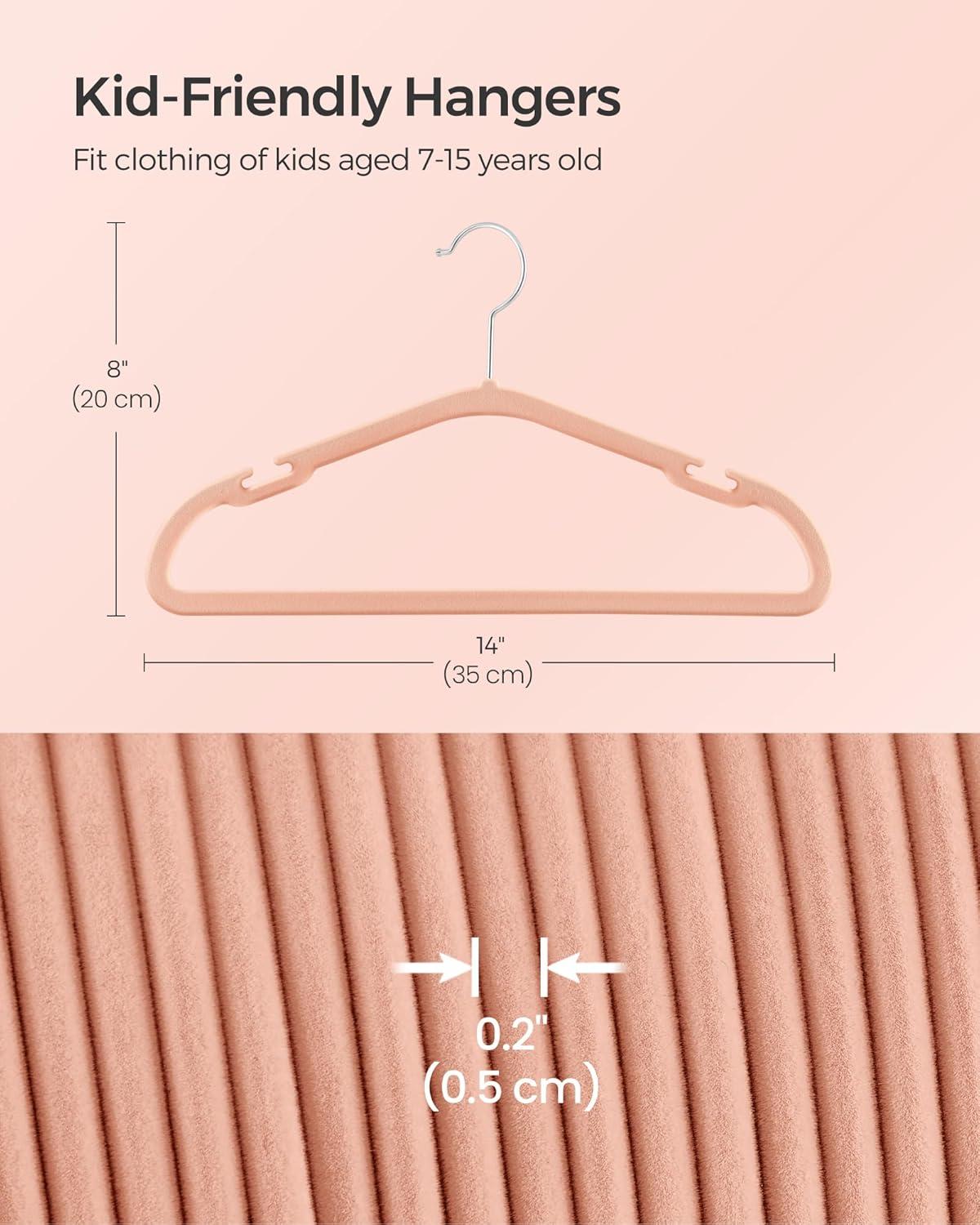 【NON-SLIP SURFACE】The soft velvet surface of these closet hangers prevents clothes from slipping off, ensuring that your little one's outfits stay neatly in place and off the floor