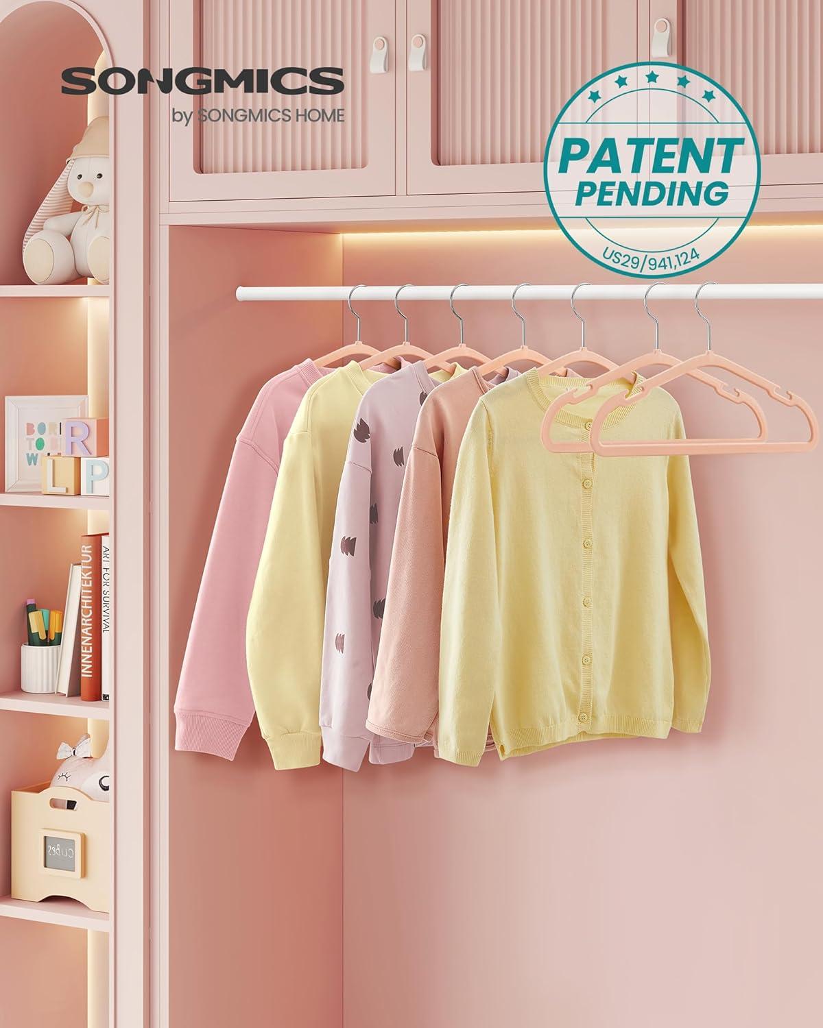 【SPACE-SAVING DESIGN】At only 0.2″ (0.5 cm) thick, these slim kid's hangers optimize your closet space and allow you to fit more clothes in a limited area