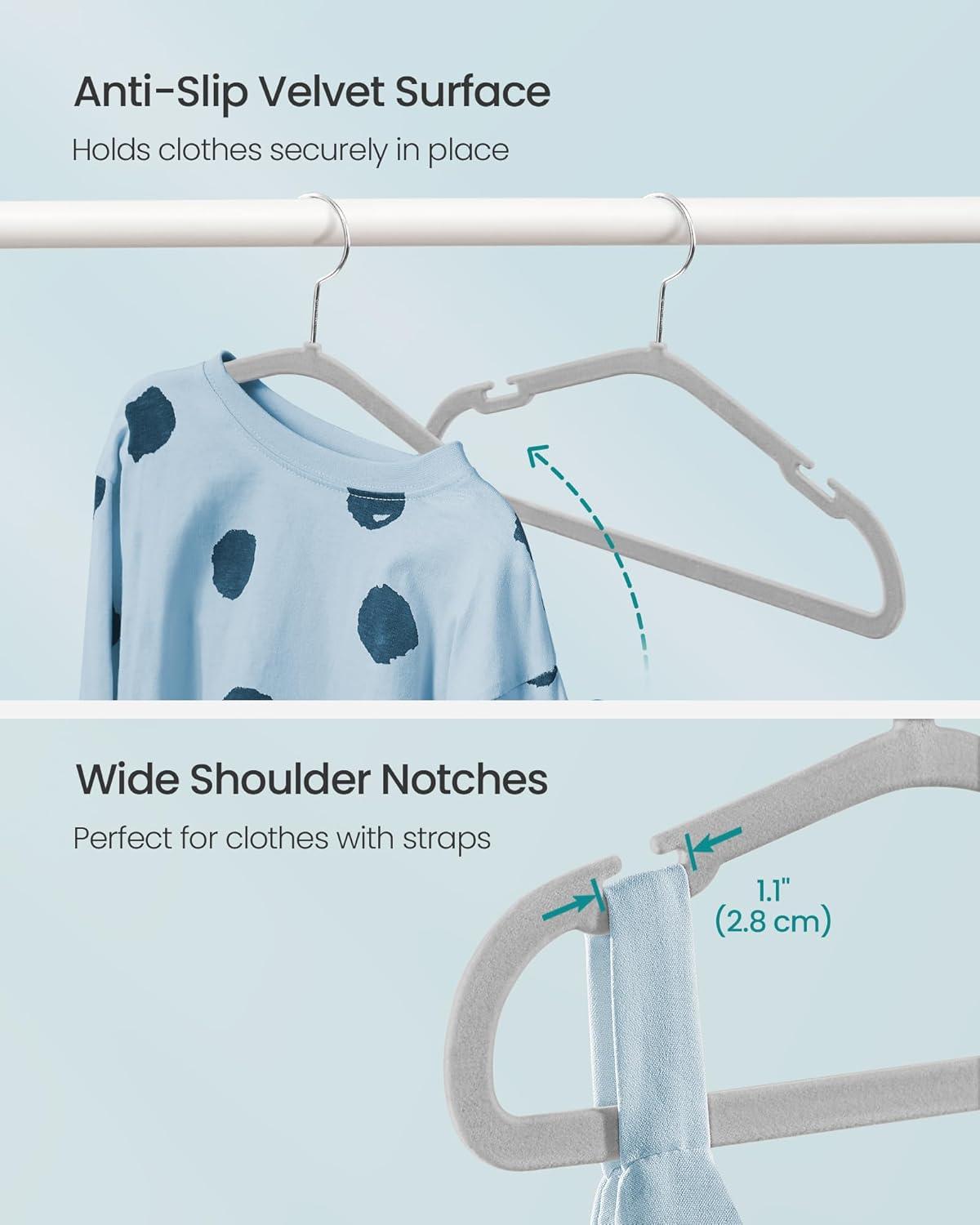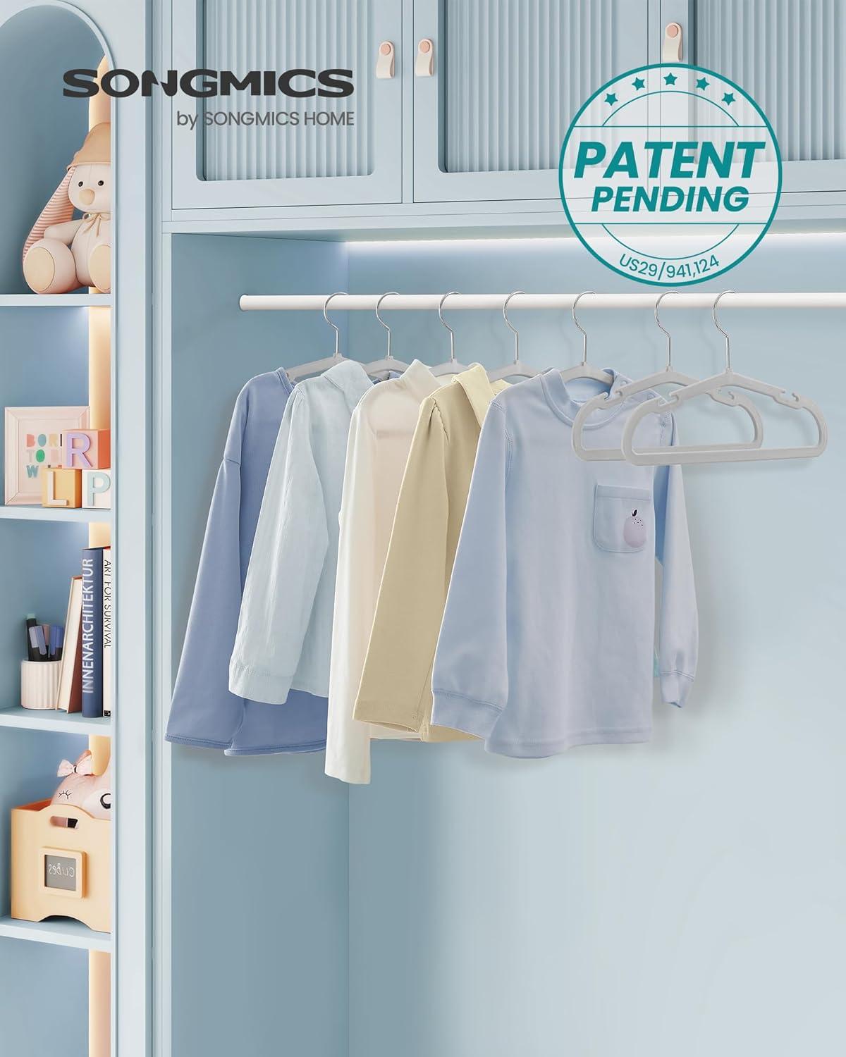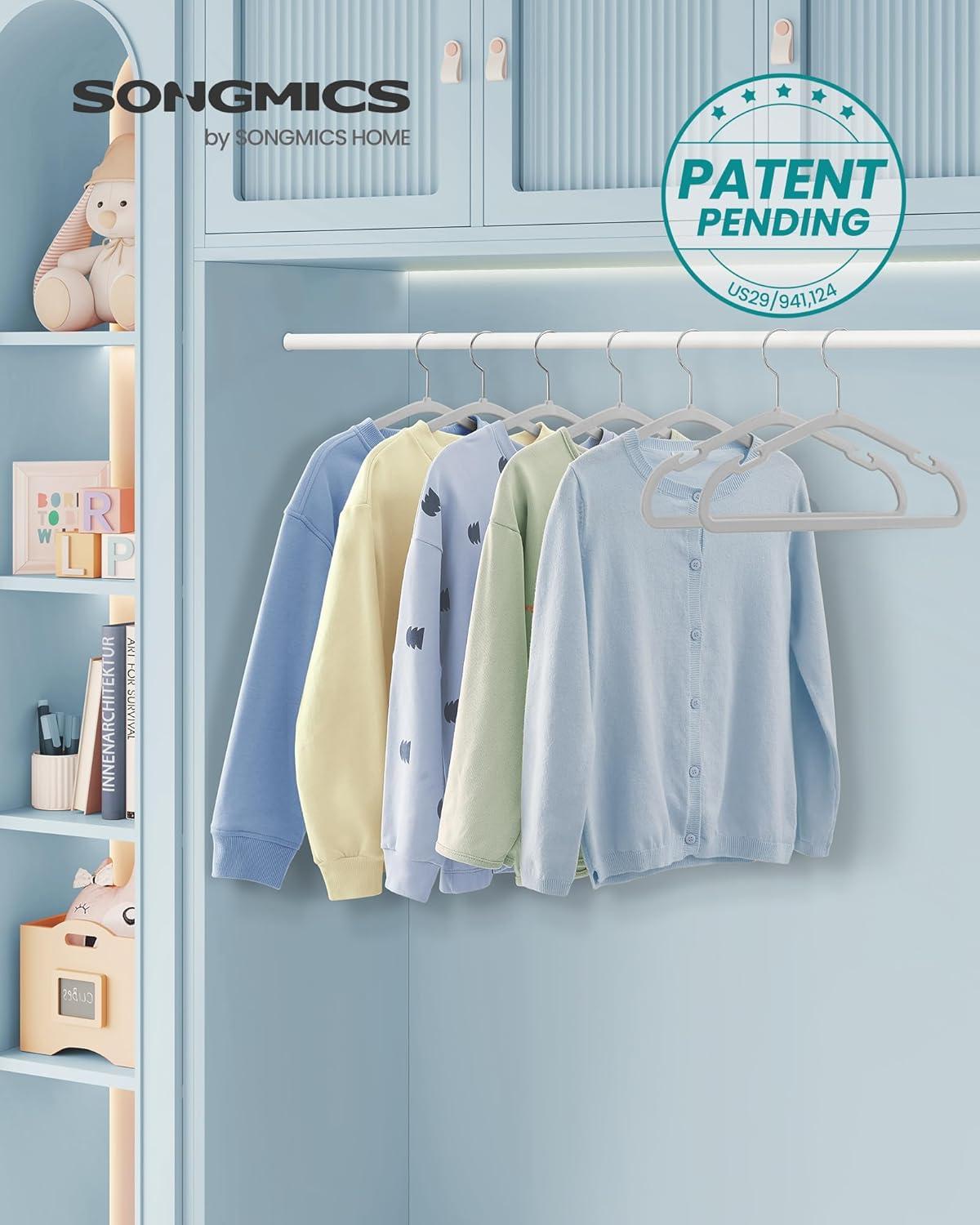 【NON-SLIP SURFACE】The soft velvet surface of these closet hangers prevents clothes from slipping off, ensuring that your little one's outfits stay neatly in place and off the floor