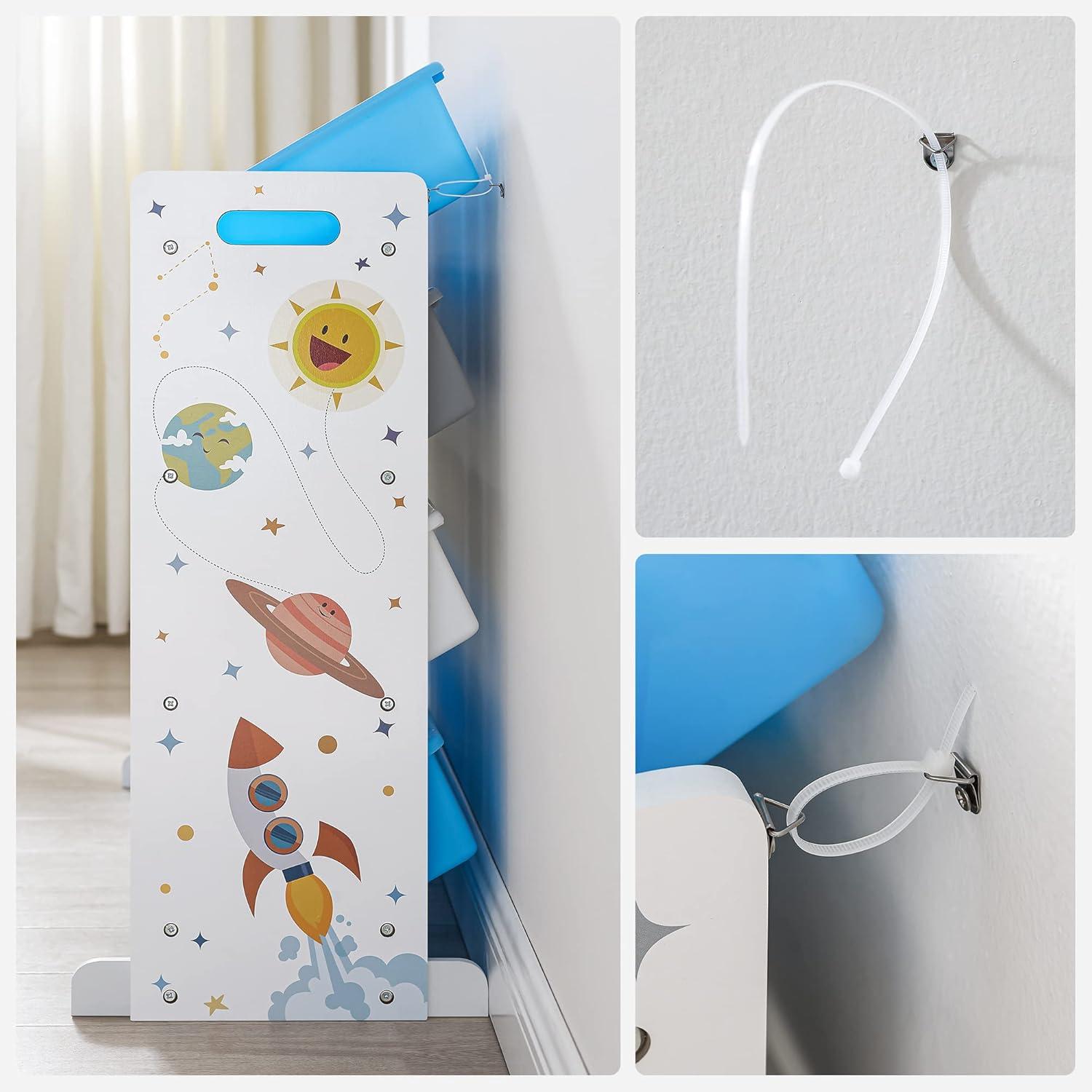 Safety Is Crucial: With stability and safety as the key, this toy organizer is equipped with bottom support feet, fixed to the wall by anti-tip kit, and designed with rounded corners, providing your kids a safe space