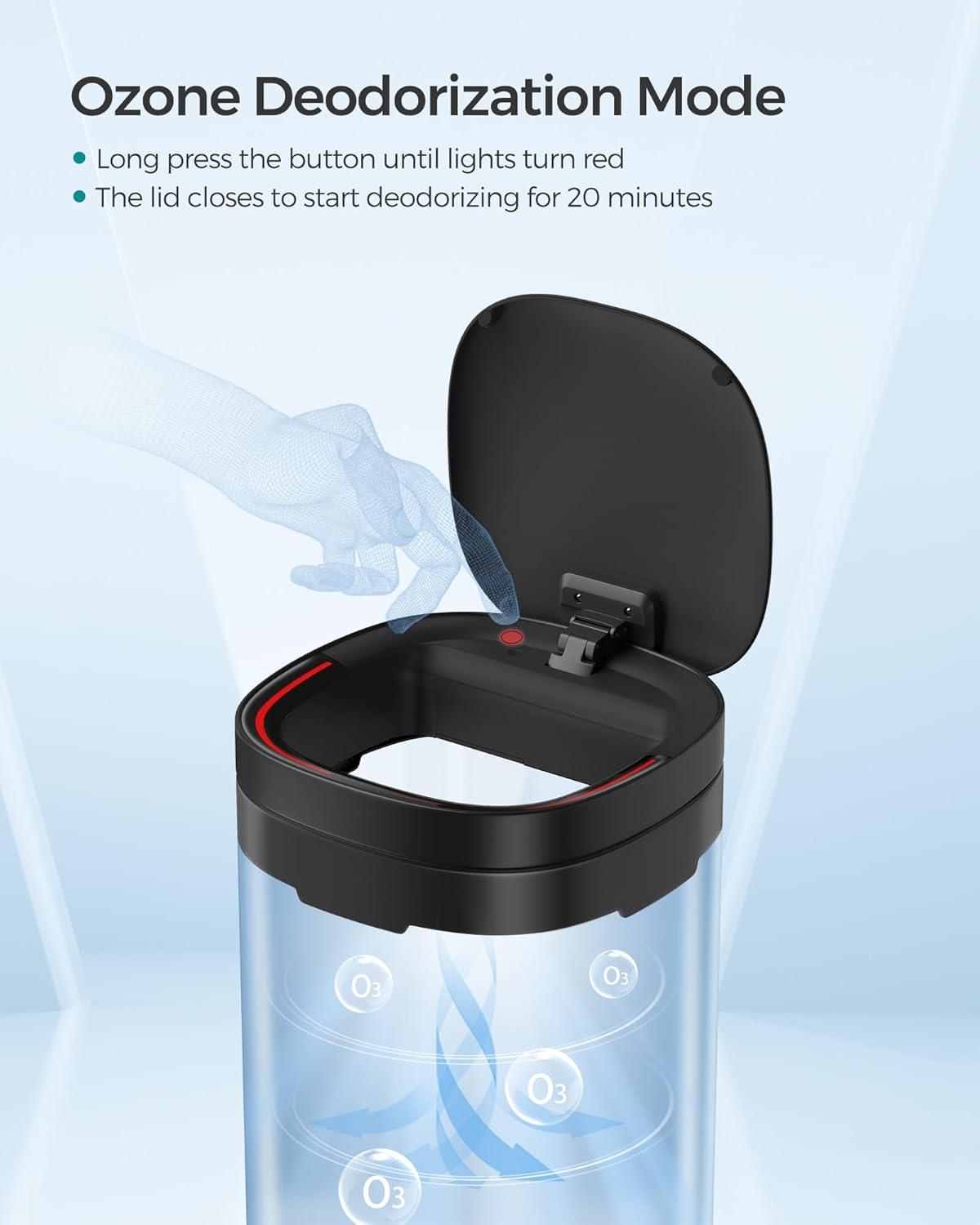 【OZONE ODOR CONTROL】Activate the ozone function by pressing the button under the lid for a silent 20-minute deodorization cycle, effortlessly keeping your kitchen fresh and odor-free