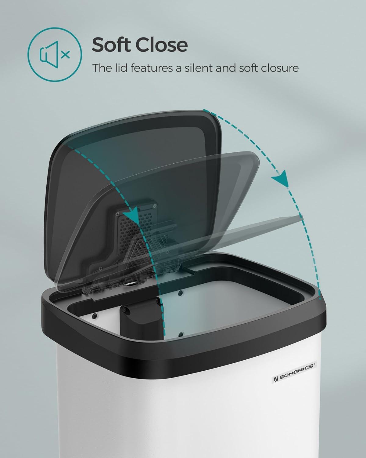 [Soft-Close & Stay-Open] This garbage can has a lid that closes quietly and gently without slamming shut. Additionally, you can easily keep the lid open by manually opening it to a catch point when dealing with large clean-ups