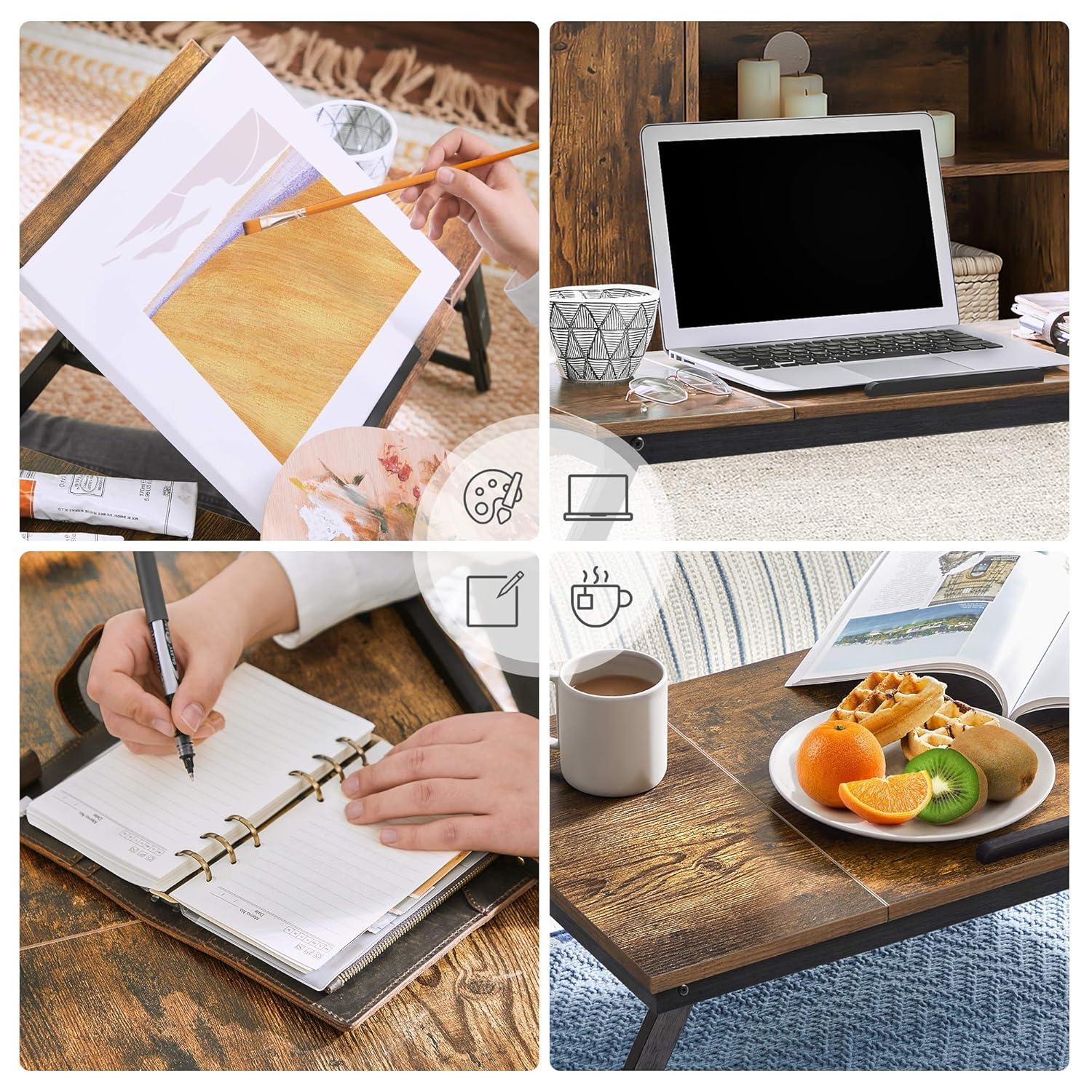 [Let the Versatility Flow]: Remove the laptop, flatten the tilt top, and put the stopper in the handy drawer on the side, ta-da! A 13.8”D x 27.5”W desktop! What would you like to do on it? Do arts and crafts while sitting on the sofa? Or have breakfast in bed?
