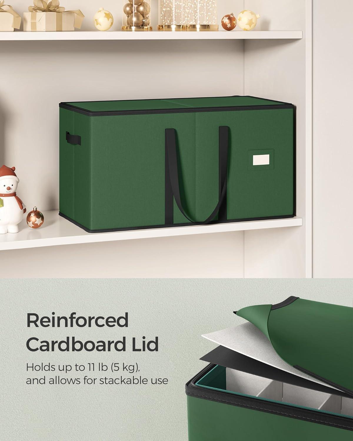 [Stack 'Em Up] Thanks to the reinforced cardboard lid, you can stack up these ornament storage containers to maximize your vertical space. Say goodbye to disorder and hello to a neatly stacked tower of festive joy!