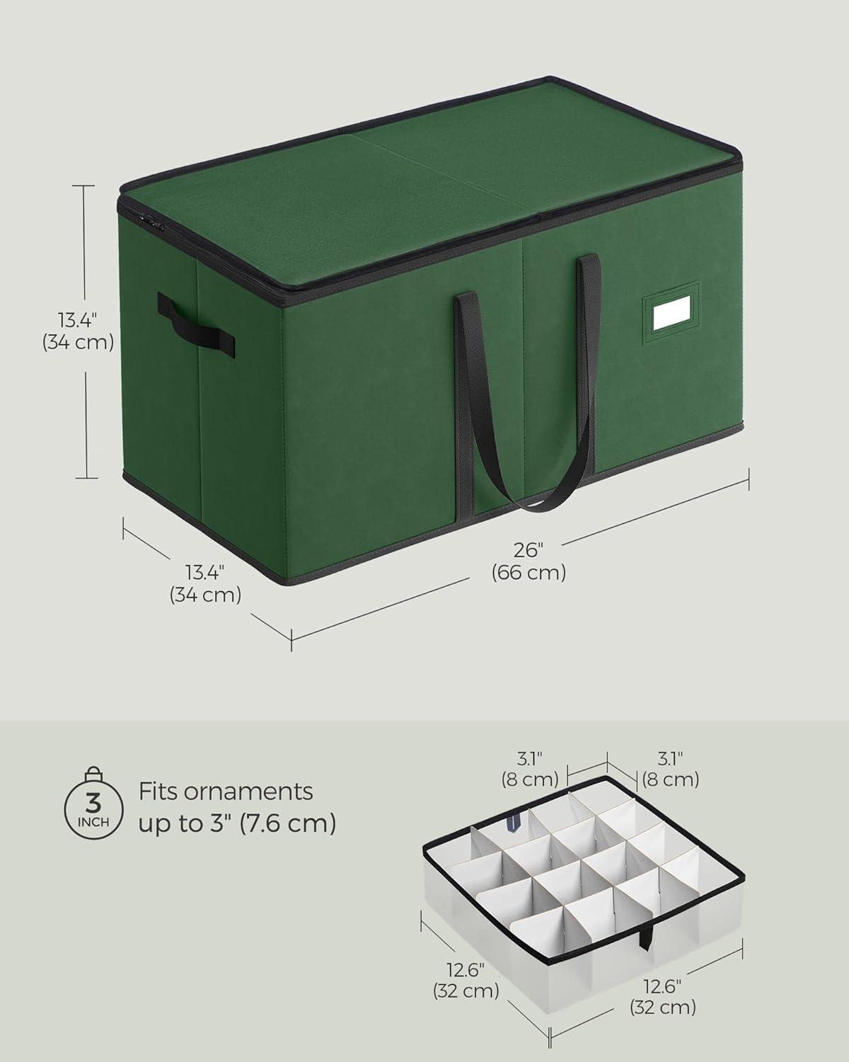[Secure and Portable] Dual zippers keep dust out, ensuring items in the Christmas ornament storage box stay in perfect condition. The lid prevents accidental openings for added safety, and 4 side handles provide easy mobility
