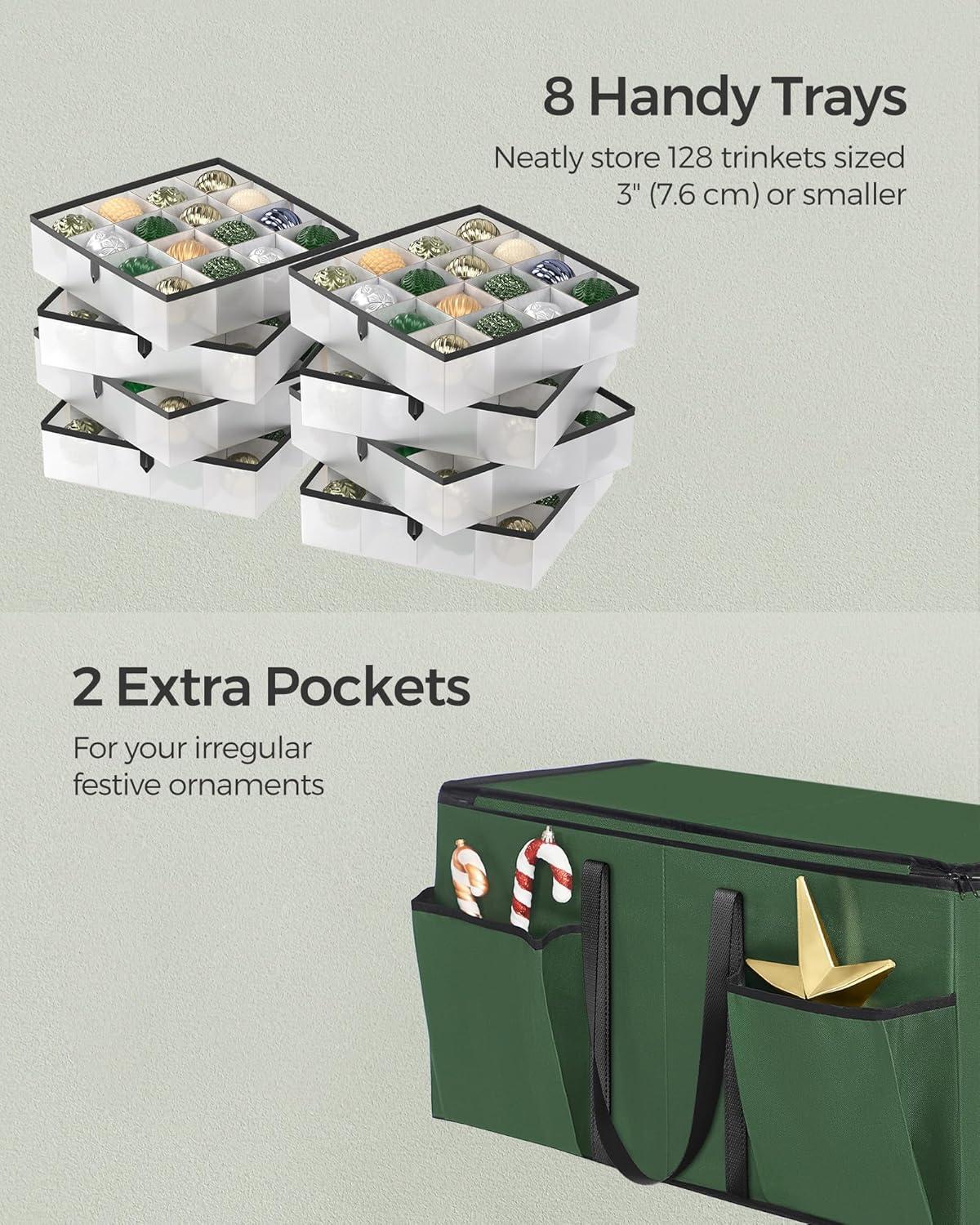 [Easy Access, Flexible Storage] The 8 trays come with fabric pull tabs for effortless access to your treasured ornaments. Need space for bells and light strings? The adjustable dividers are ready to accommodate them! Truly, a Christmas wonder!