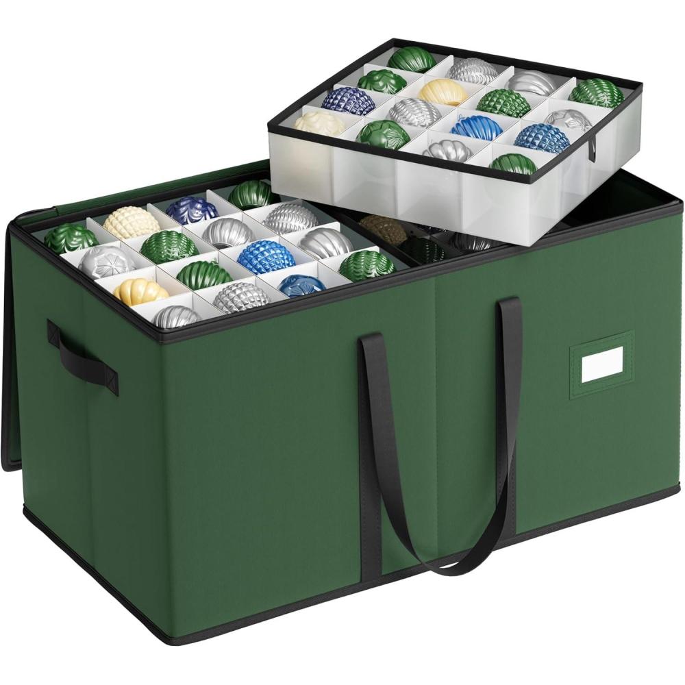 [Every Trinket in Its Place] With 128 individual 3″ (7.6 cm) slots and 2 additional pockets, your baubles, pinecones, or bells all have a place to call home. And with the front label holder on the storage box, you'll never lose track of who lives where