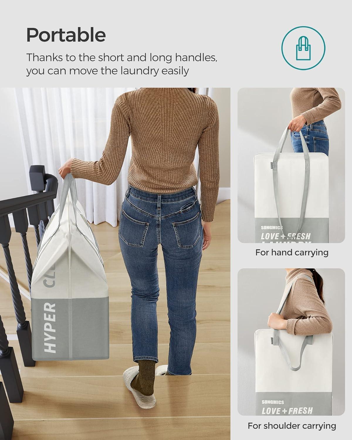 [Easy to Move and Empty] This laundry basket has short handles to lift it up and long handles to carry it over your shoulder, so you can easily move your laundry to the laundry room. There is another handle at the bottom for emptying the bag