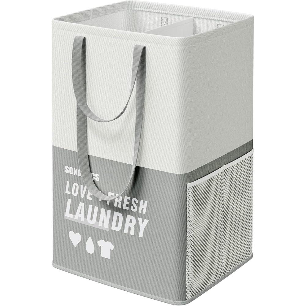 [2 Sections for Sorting] The laundry basket is designed with a divider that enables you to sort clothes by type or color, and the side mesh pockets are great for keeping small clothes or detergents handy
