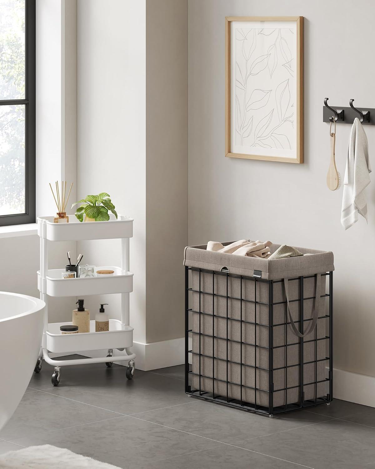 [Select Materials, High Sturdiness] The 200 g/m² fabric bag is very sturdy and can hold up to 44 lb, while the wire basket can hold up to 66 lb. Feel free to fill the laundry basket to the brim with all your dirty laundry
