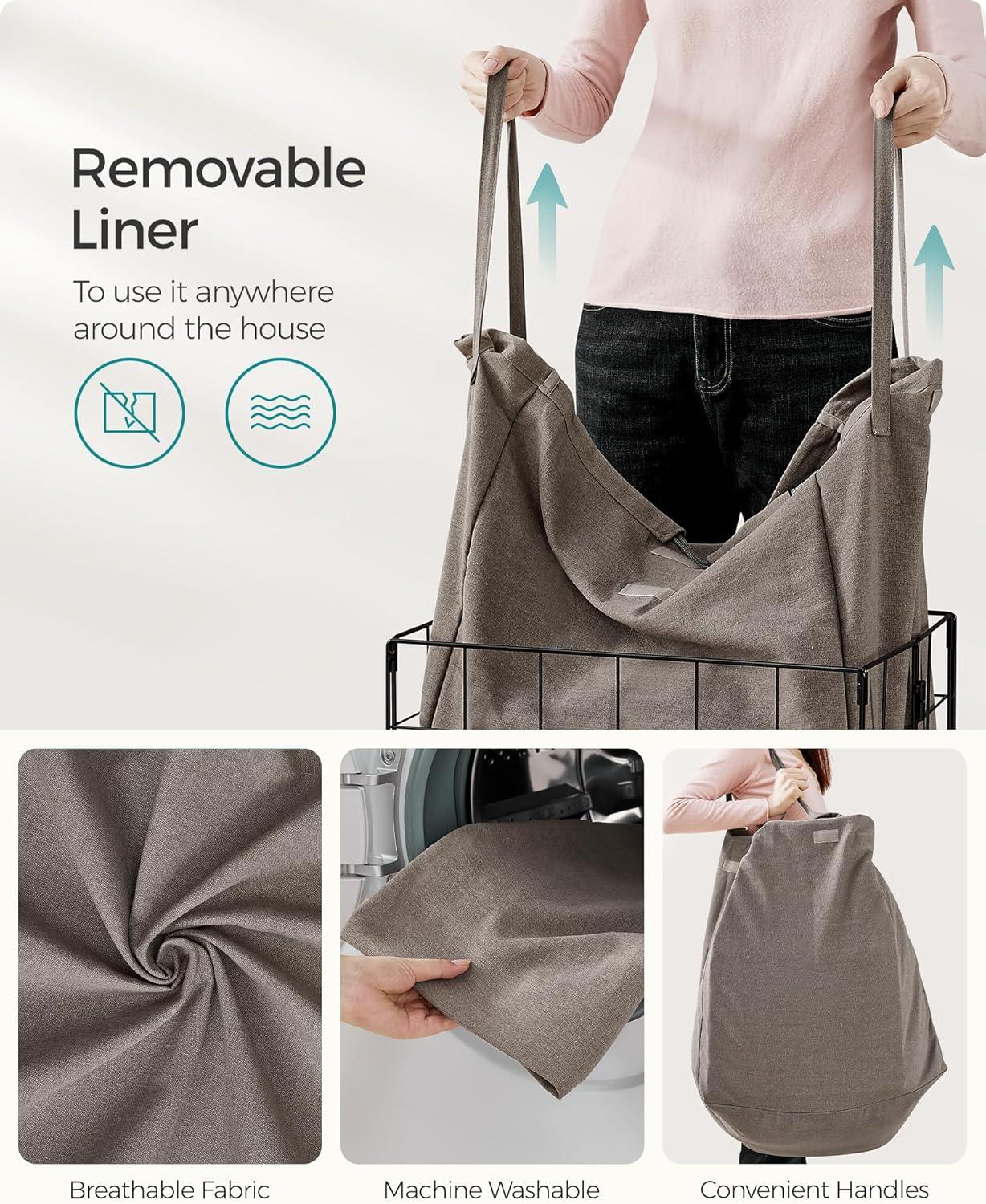 [Easy to Remove and Move] Attached to the basket with hook-and-loop fasteners, the bag is easy to remove. The handles let you easily carry your laundry from the bedroom to the laundry room or bathroom, without having to carry the whole laundry hamper