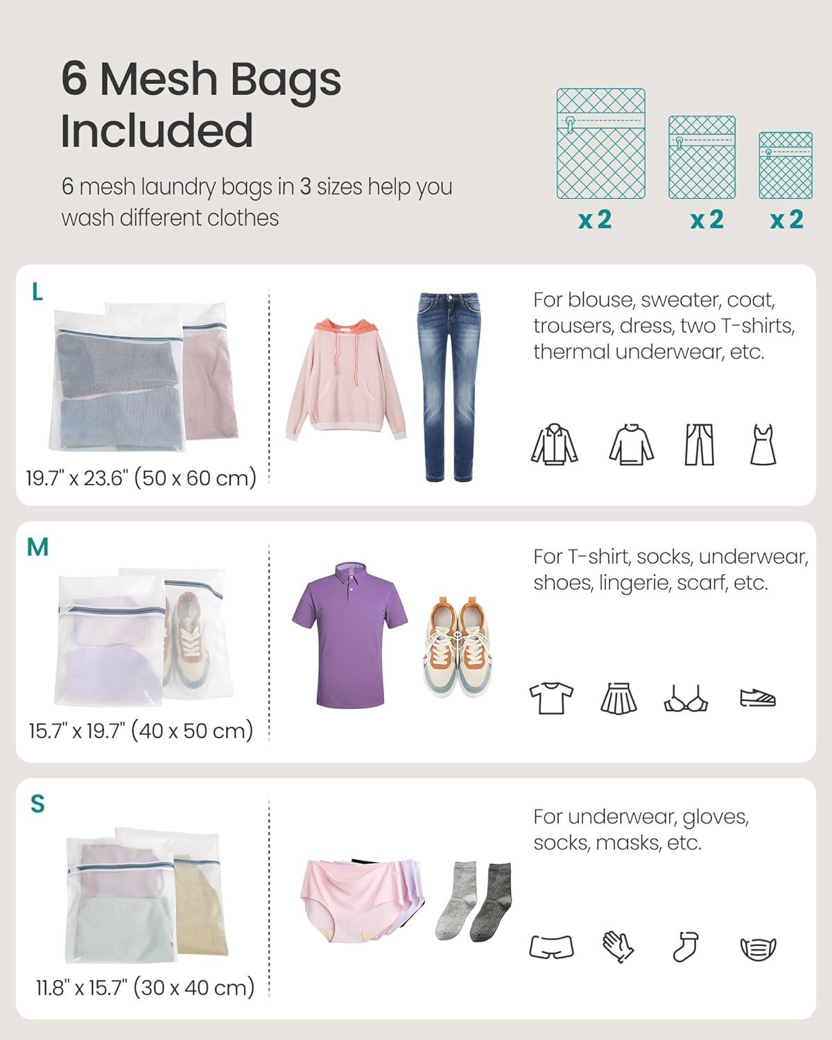 [6 Mesh Laundry Bags Provided] This hamper comes with 6 laundry bags to help you protect your underwear, socks, or other delicates when you wash them in the washing machine