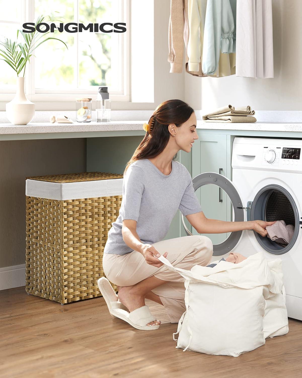 SONGMICS Laundry Hamper with Lid, 110L Clothes Hamper with 2 Removable Liner Bags, 6 Mesh Bags, Wicker Laundry Basket, Double Laundry Hamper for Bathroom, 13 x 22.4 x 23.6 Inches, Natural ULCB52NL(Natural)