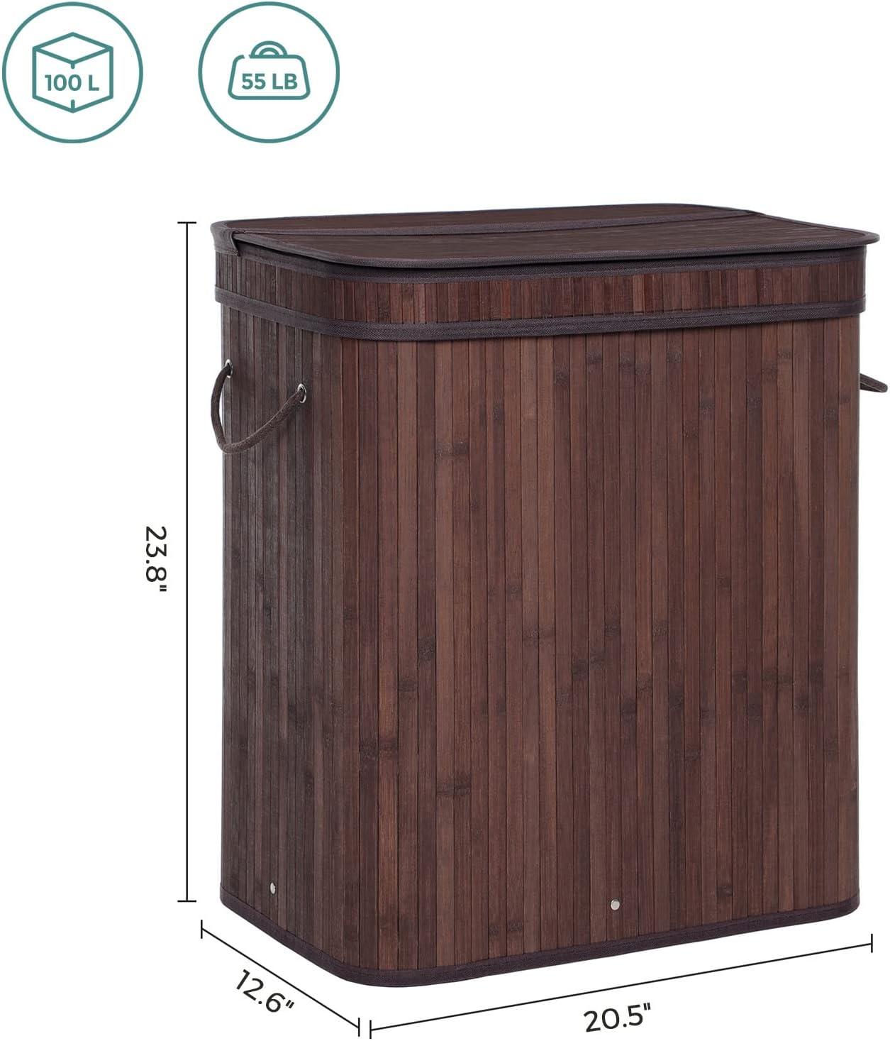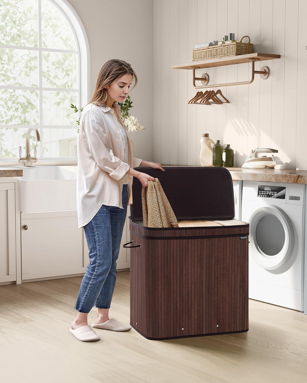 [Sturdy and Foldable] Constructed with 17 mm wide bamboo slats and supported by a metal frame, this laundry basket is both stable and sturdy, capable of holding up to 55 lb. Its simple design allows it to easily fold flat when not in use