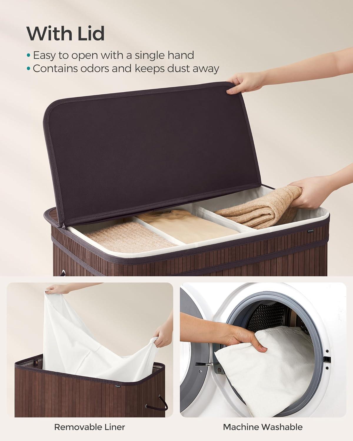 [Machine Washable Liner] Keeping this laundry liner clean is a breeze. The 160 g/m² thick cotton inner bag is both removable and machine washable, so you can easily take it out and transport it to your laundry room