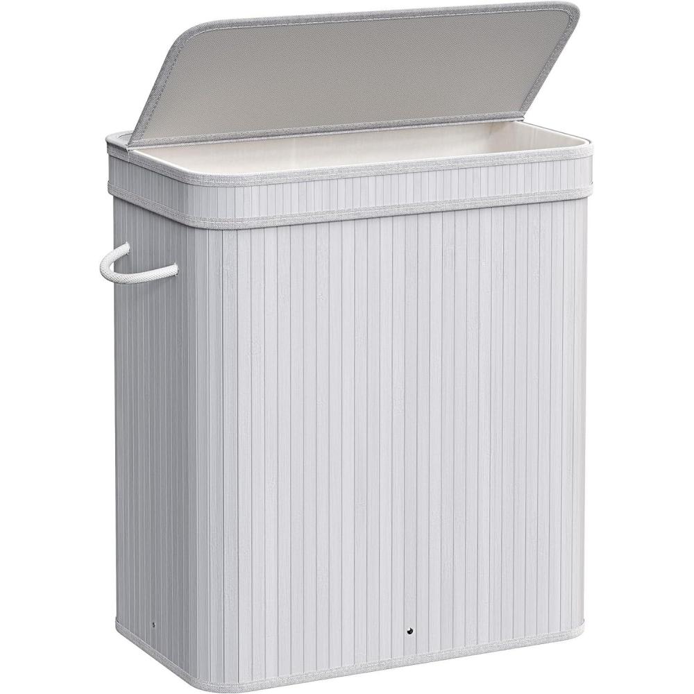 SONGMICS Laundry Hamper with Lid, Bamboo Laundry Basket, Removable Machine Washable Laundry Basket, with Handles, 26.4-Gallons, for Laundry Room, Bedroom, Bathroom, Ink Black ULCB63H(Dove Gray)