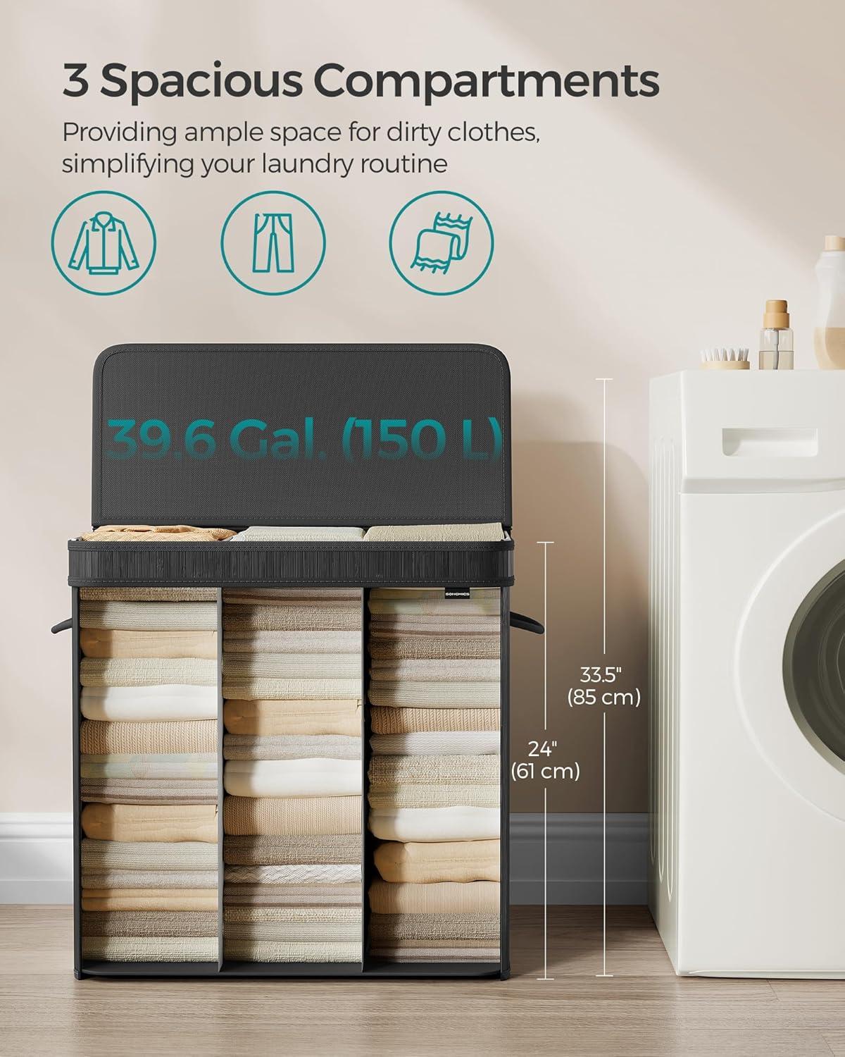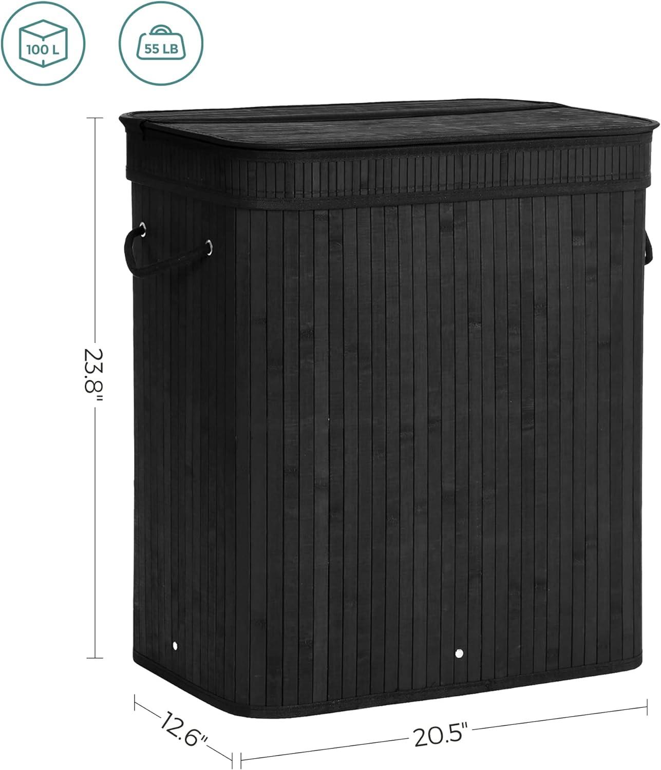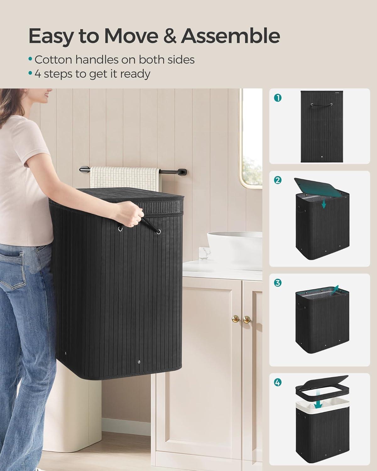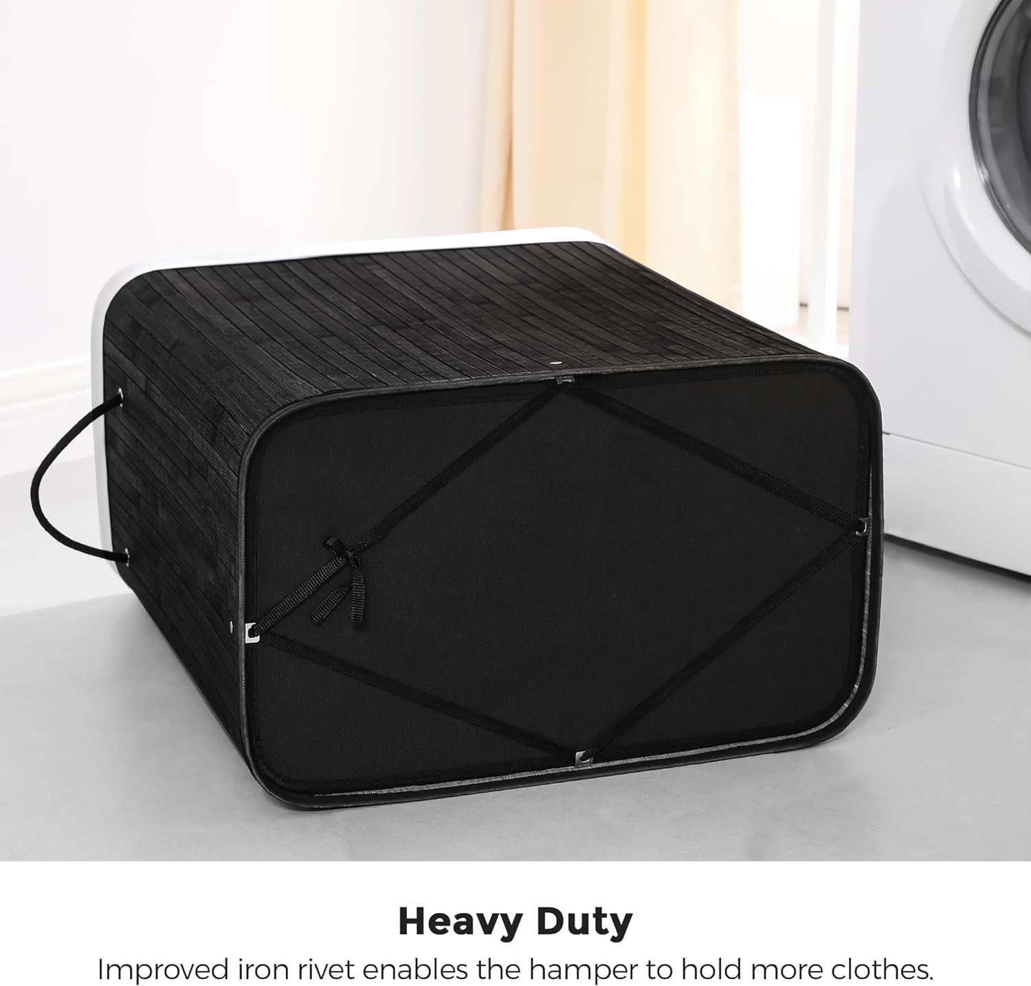 [Sturdy and Foldable] Constructed with 17 mm wide bamboo slats and supported by a metal frame, this laundry basket is both stable and sturdy, capable of holding up to 55 lb. Its simple design allows it to easily fold flat when not in use