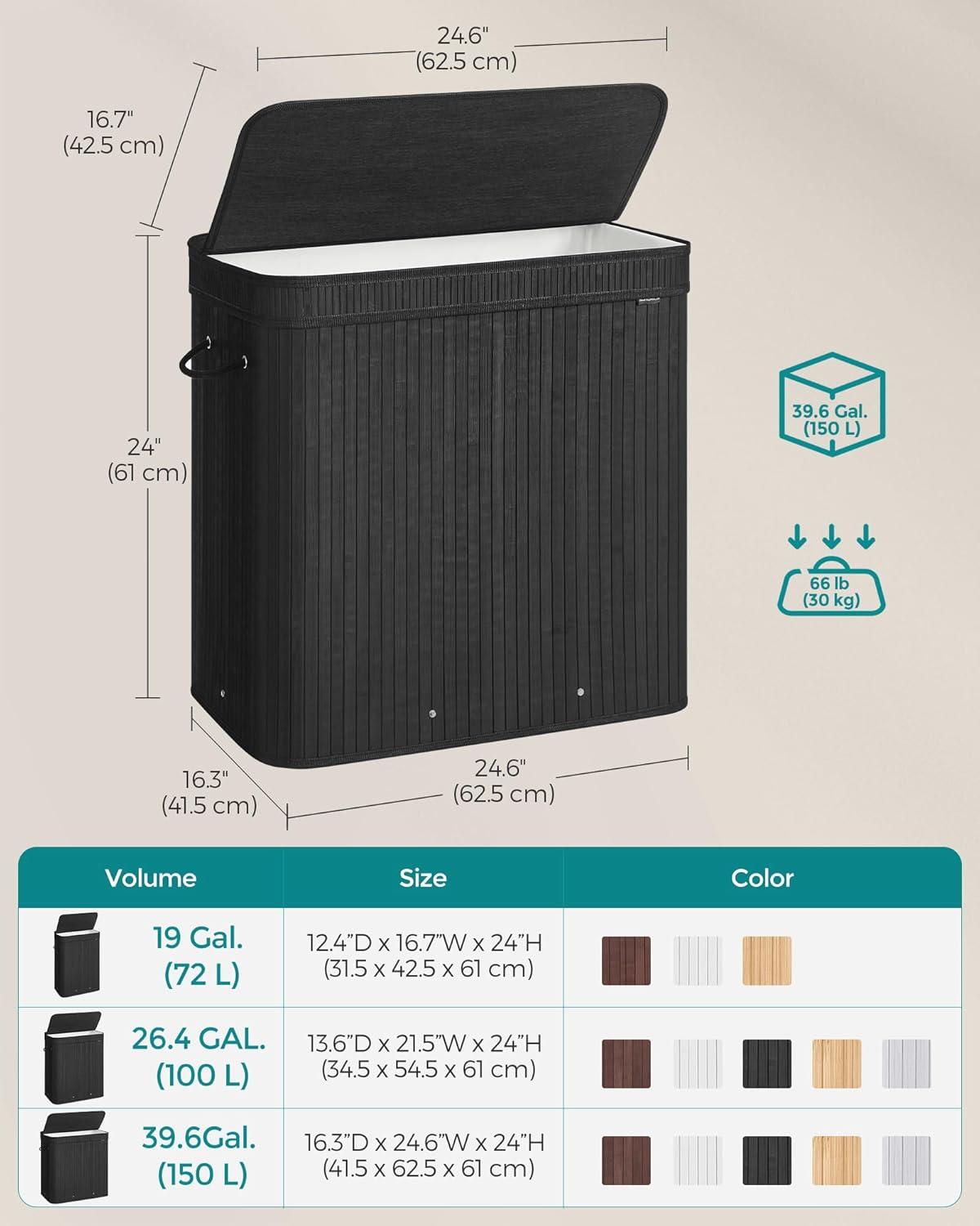 [Large 26.4-Galons Capacity] With dimensions measuring 13.6''D x 21.5''W x 24''H, this hamper has a generous capacity of 26.4-Gallons, allowing you to store a week's worth of laundry within